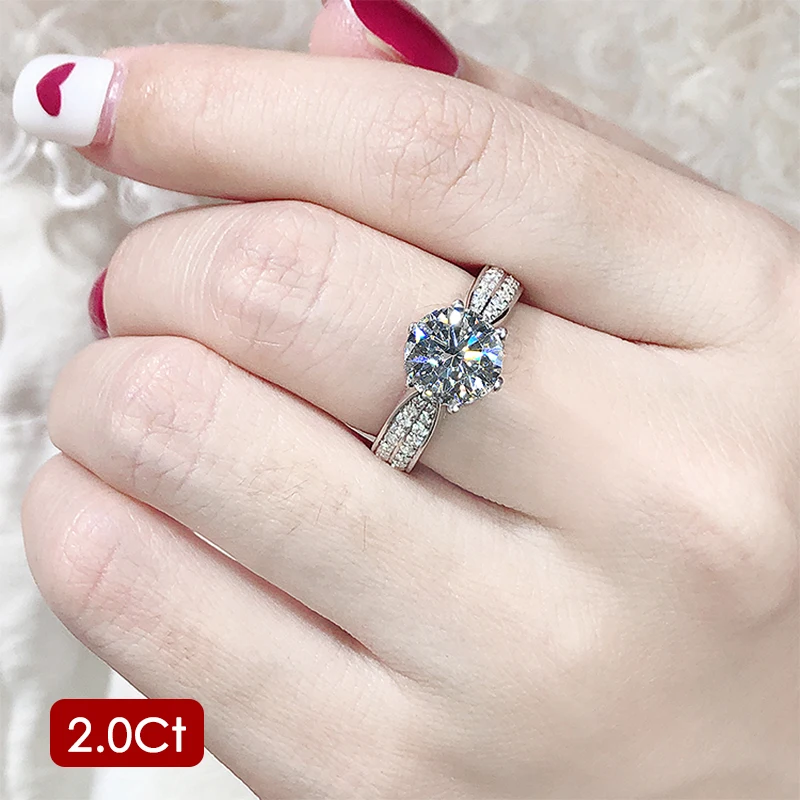 Женское кольцо из серебра с муассанитом, 1 карат, 2 карата, 3 карата