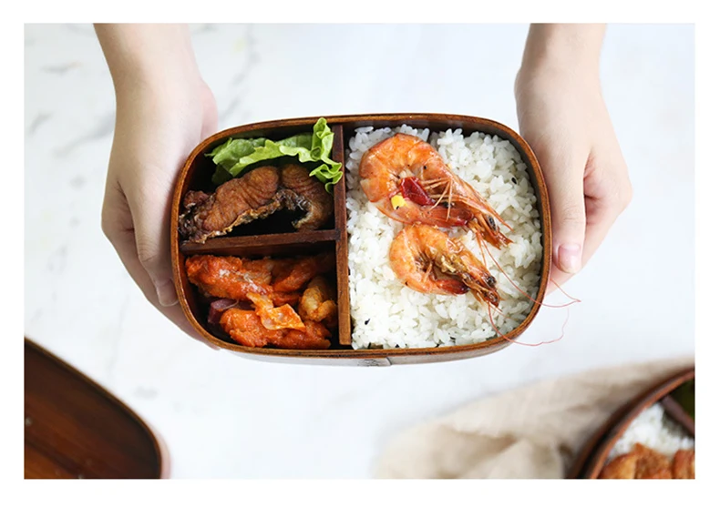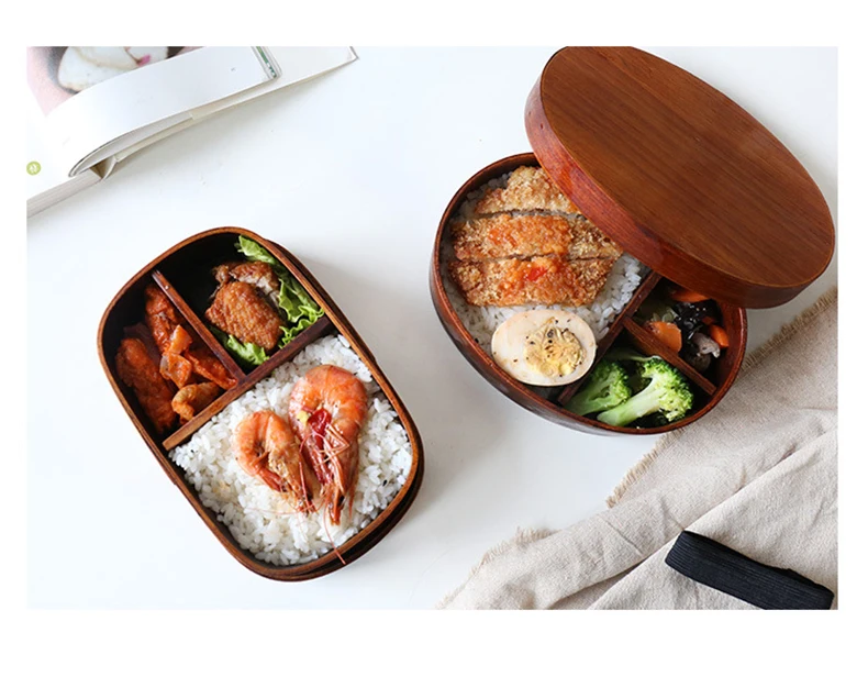 Деревянный Ланч-бокс в японском стиле, набор посуды с отсеками, ложкой, вилкой, палочками, круглая квадратная коробка для пикника, для студентов