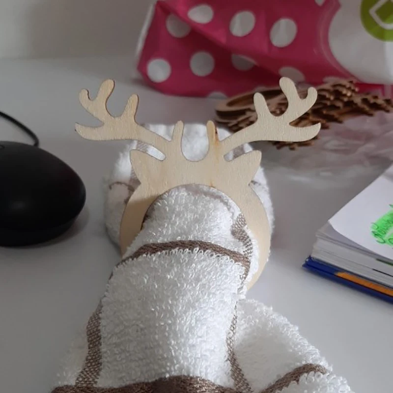 50 шт. оленьи рога именная карточка салфетница Мини Деревянные Кольца для рождественской вечеринки торжественного обеда Таблица декора дома на Рождество