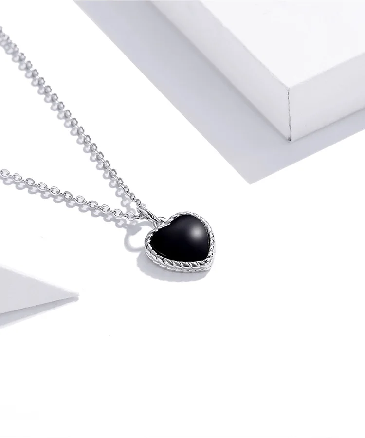 Женская цепочка с кулоном в виде черного сердца, из серебра 2021 пробы