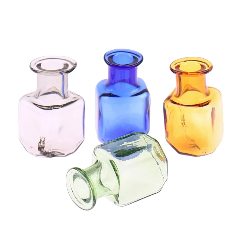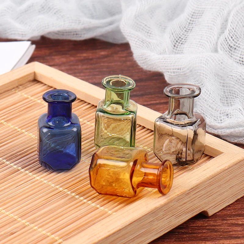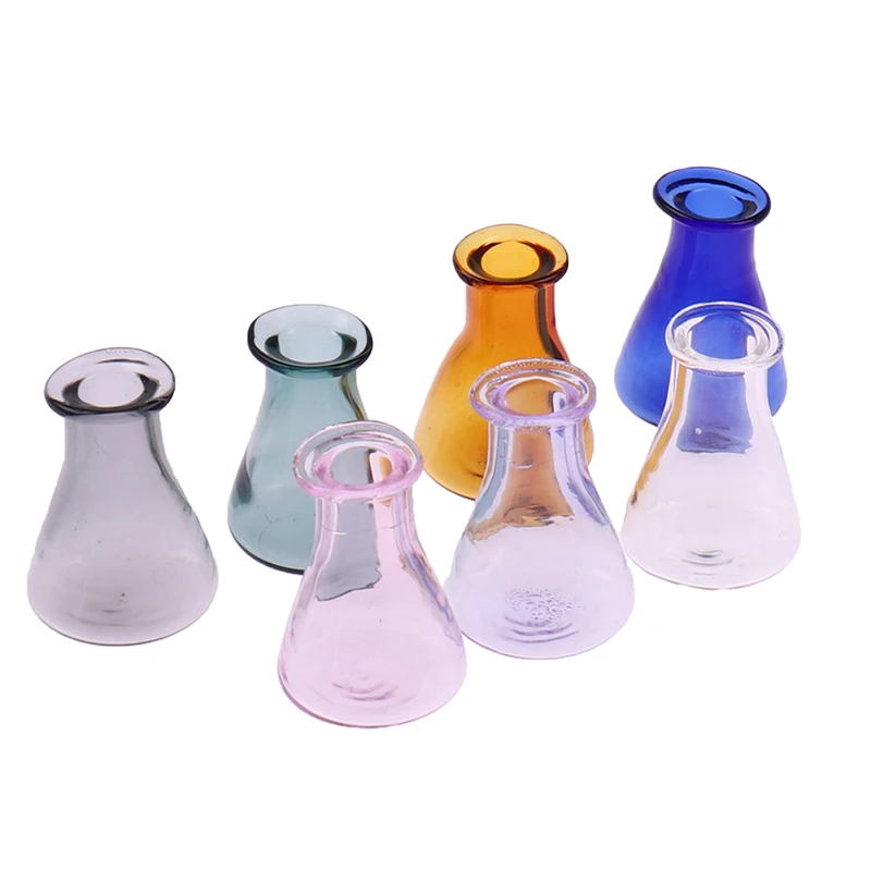 2 шт., миниатюрная коническая стеклянная ваза для кукольного домика, Игрушечная модель, стеклянная бутылка DIY ваза, наклейки для кукольного домика