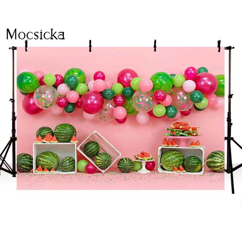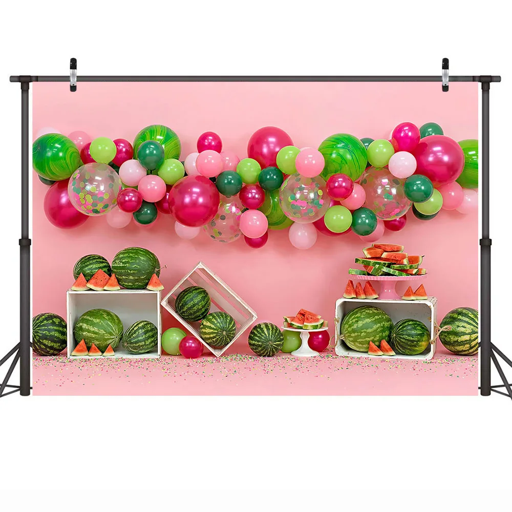 Фон для студийной фотосъемки новорожденных детей с изображением арбуза и торта