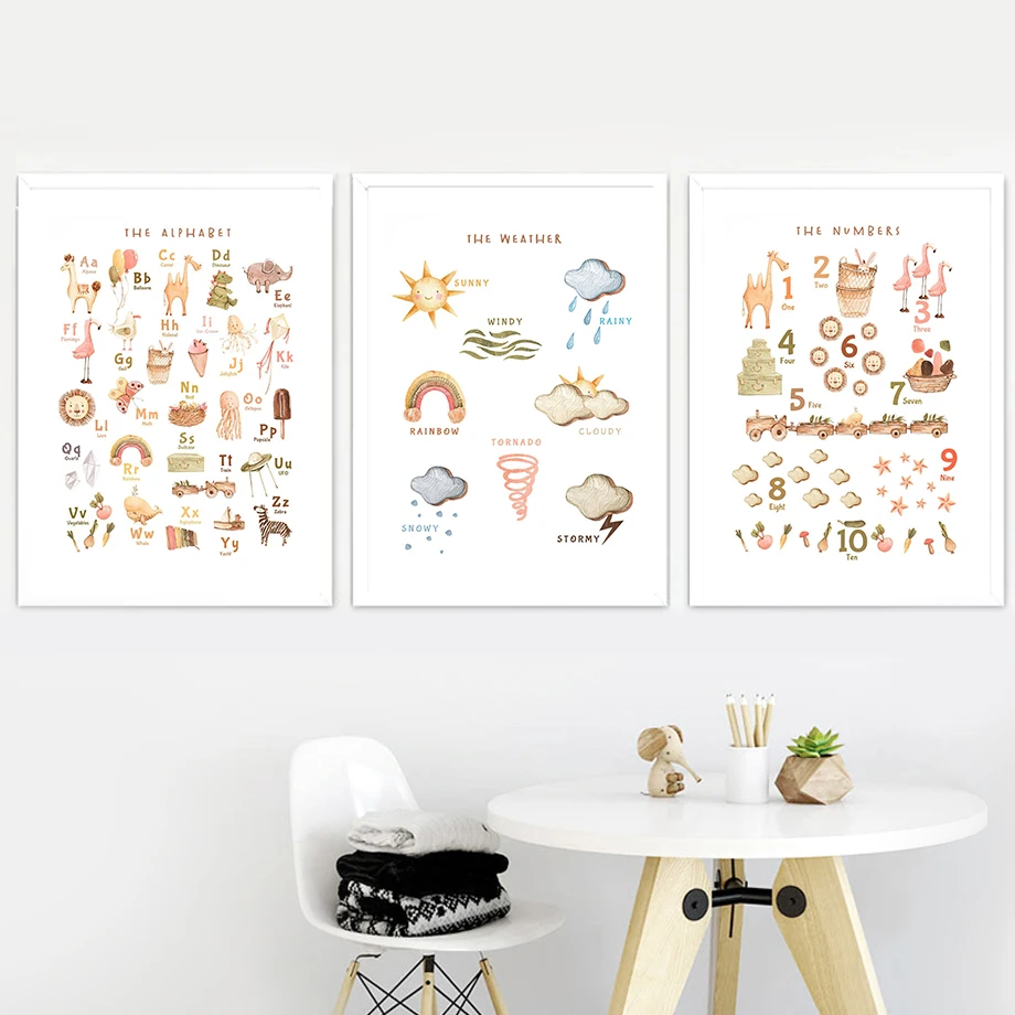 АБС-алфавит с цифрами, Детские знания, скандинавские плакаты и принты, настенная Картина на холсте, настенные картины для детской комнаты, спальни, Декор