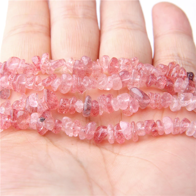 Бусины с кристаллами розы, чипы из натурального камня, родонит, клубника, кварц, Самородки, для самостоятельного изготовления ювелирных изделий, приблизительно 16 Дюймов, 5-8 мм