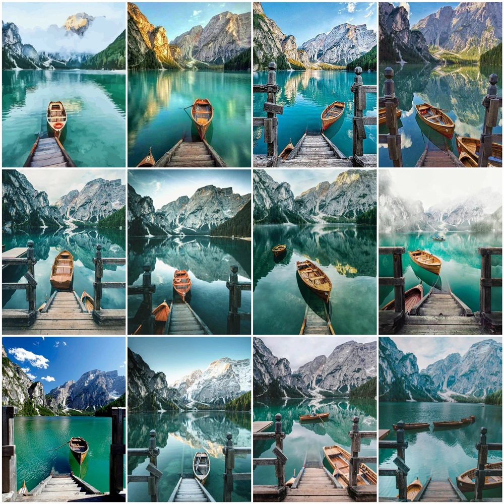 Картина для раскрашивания по номерам на холсте, с лодкой, озером