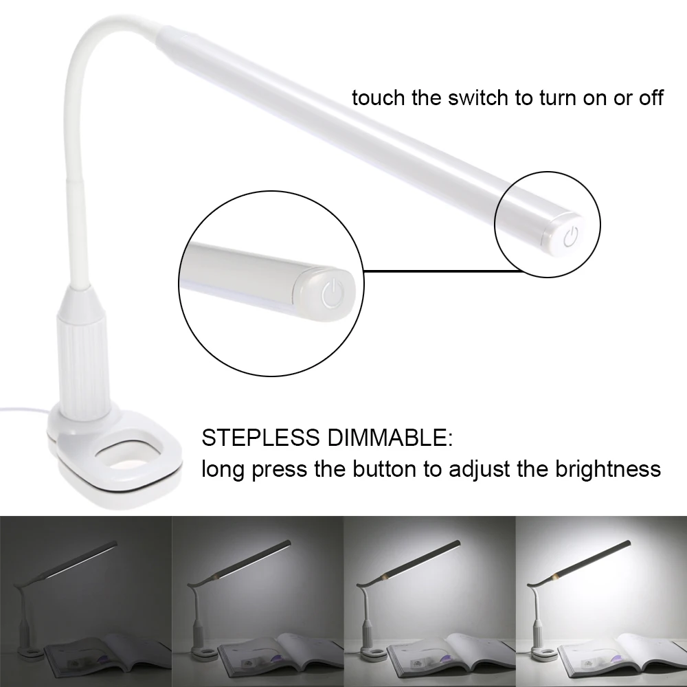 Флеш-накопитель USB, сенсорный Сенсор Управление Настольная лампа для чтения настольная лампа 24 светодиодный Плавная с регулируемой яркостью 5W для защиты глаз светодиодный настольные лампы