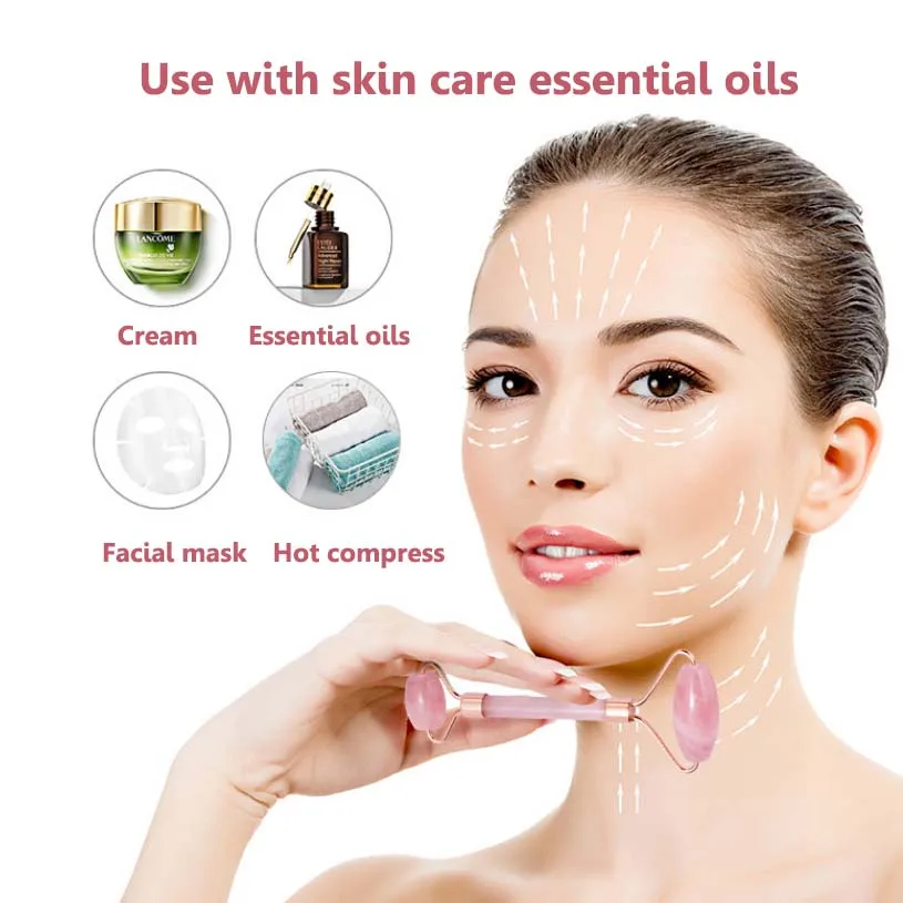 100% розовый КВАРЦЕВЫЙ ролик для лица, Нефритовый ролик для лица, массажер для тела, лица, щек, лба, шеи, инструмент для ухода за кожей