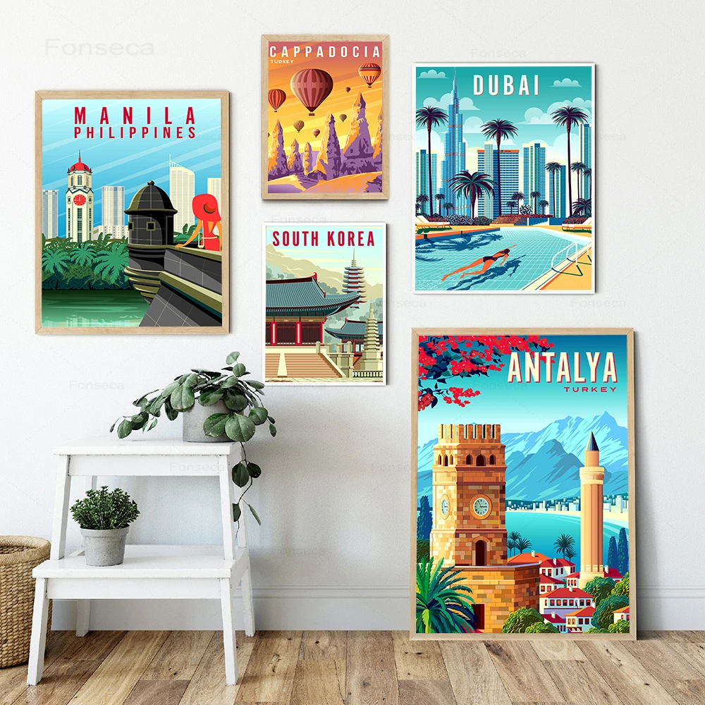 Hd Печать Путешествия города пейзаж холст искусство живопись Турция Дубай Южная Корея Израиль Филиппины винтажный плакат на стену искусство картина