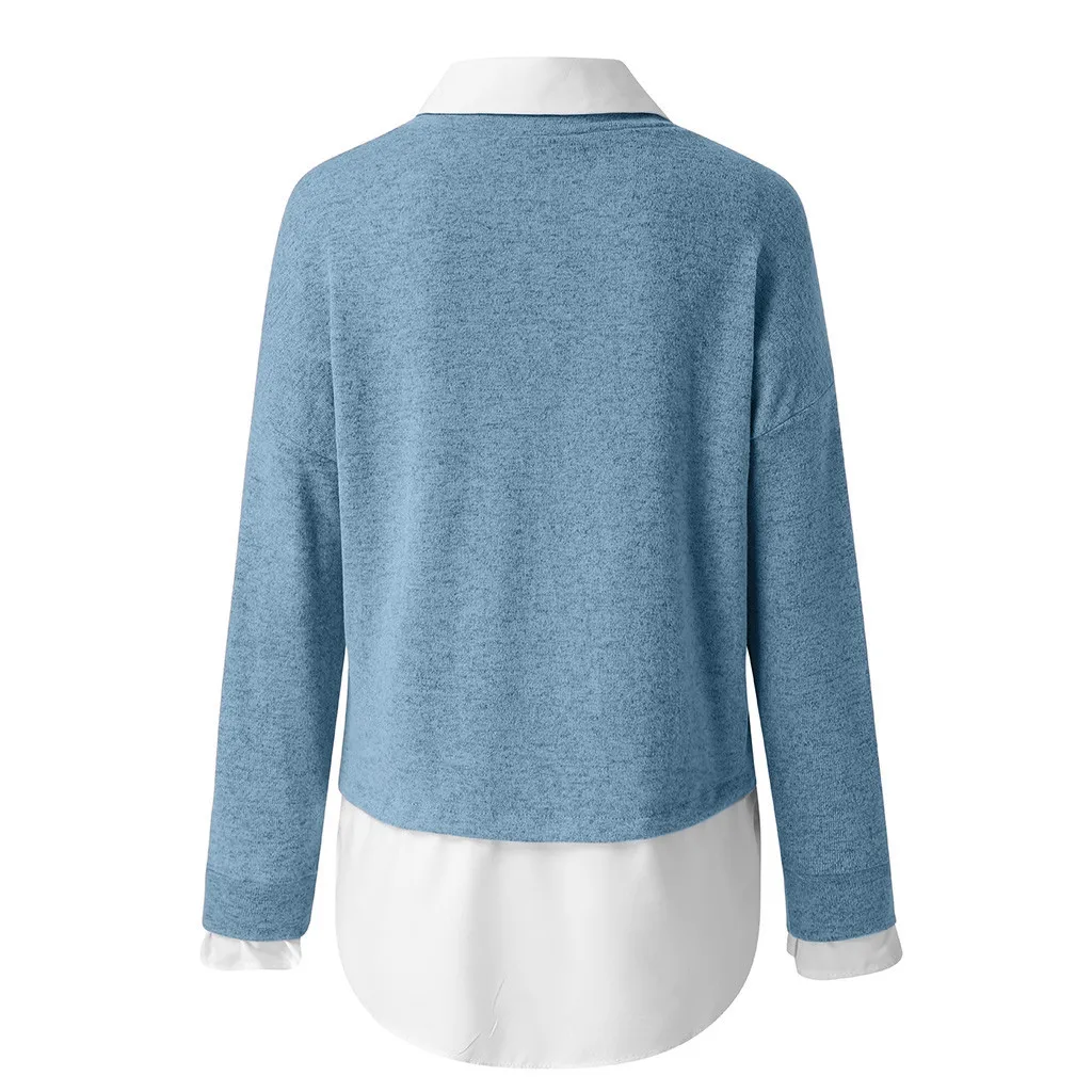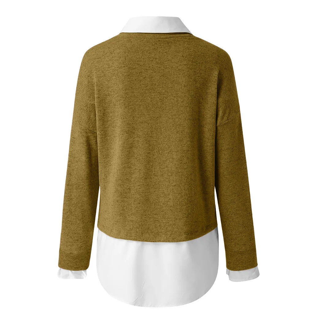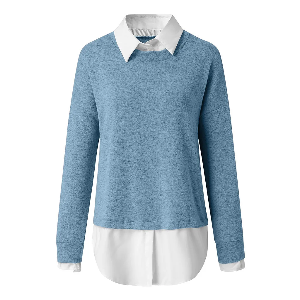 Женский зимний модный праздничный Однотонный свитер с длинным рукавом, блузка, рубашка, свитер, имитация двух предметов, 2021