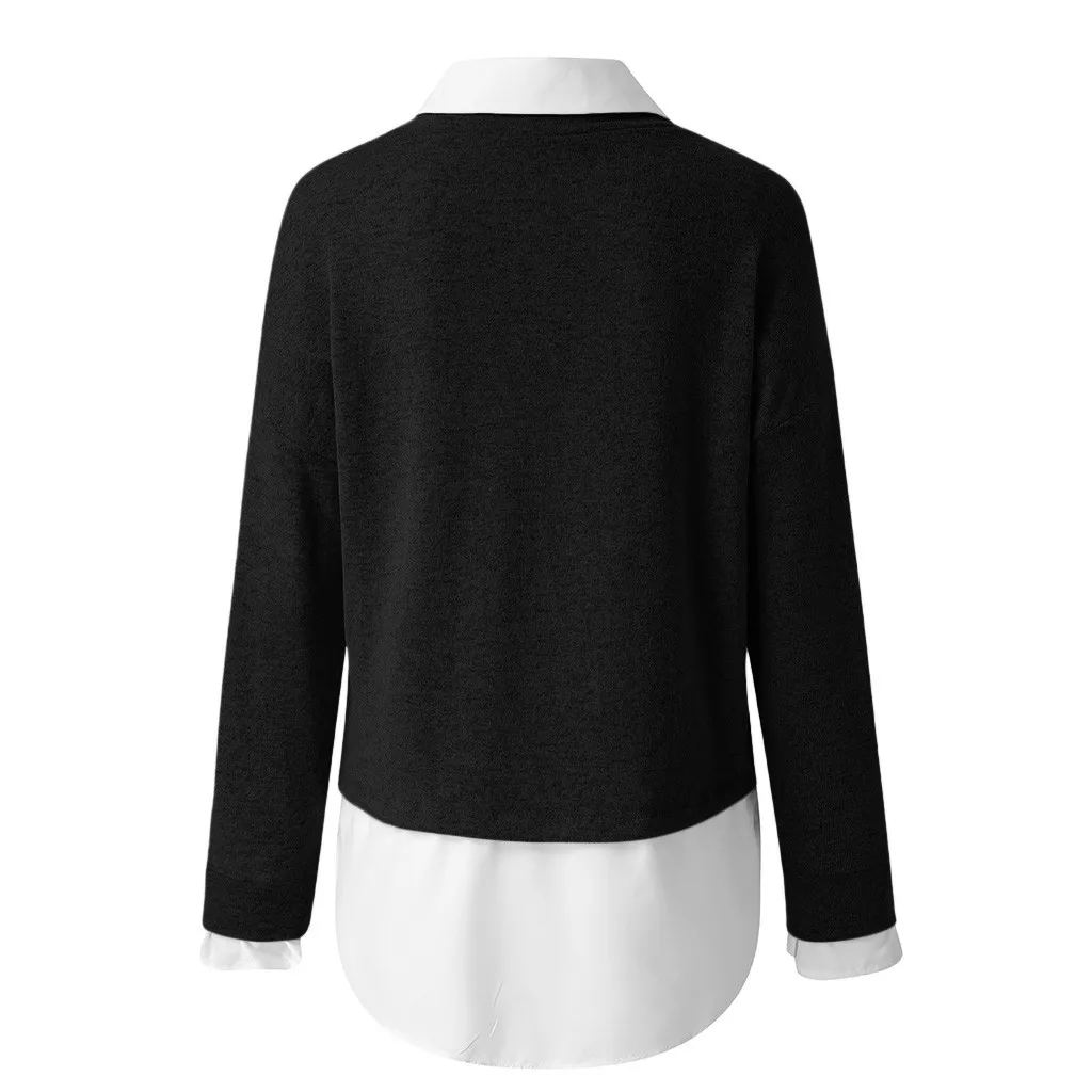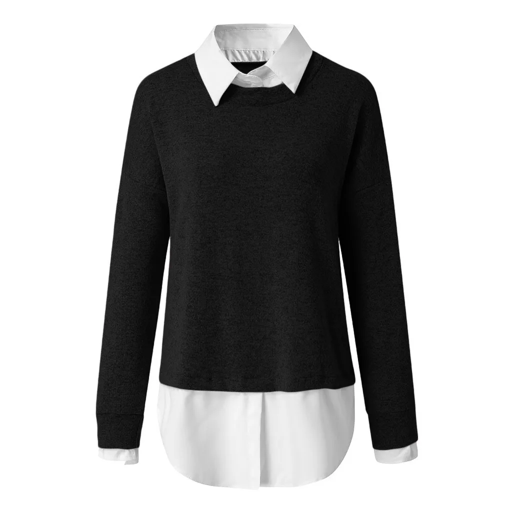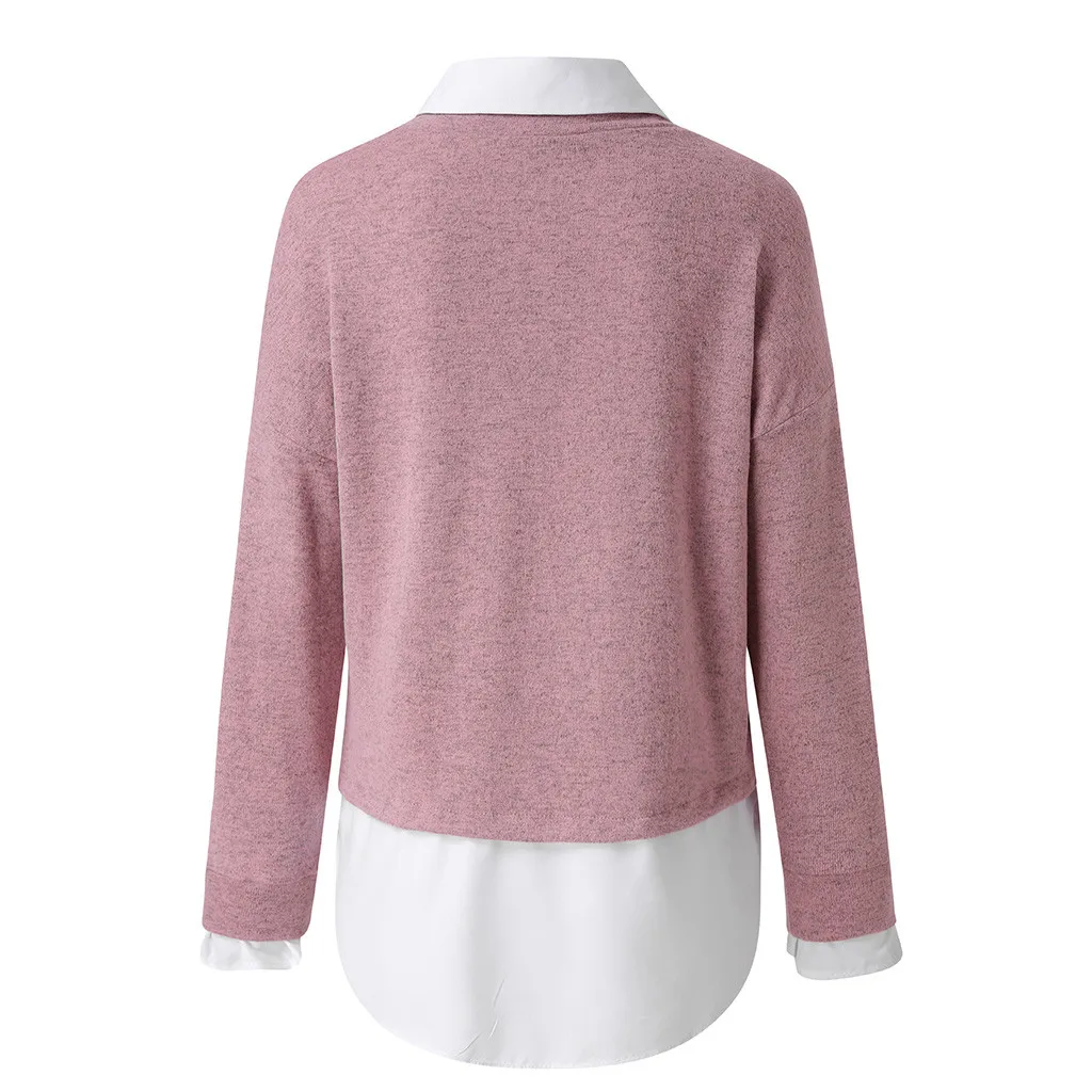 Женский зимний модный праздничный Однотонный свитер с длинным рукавом, блузка, рубашка, свитер, имитация двух предметов, 2021