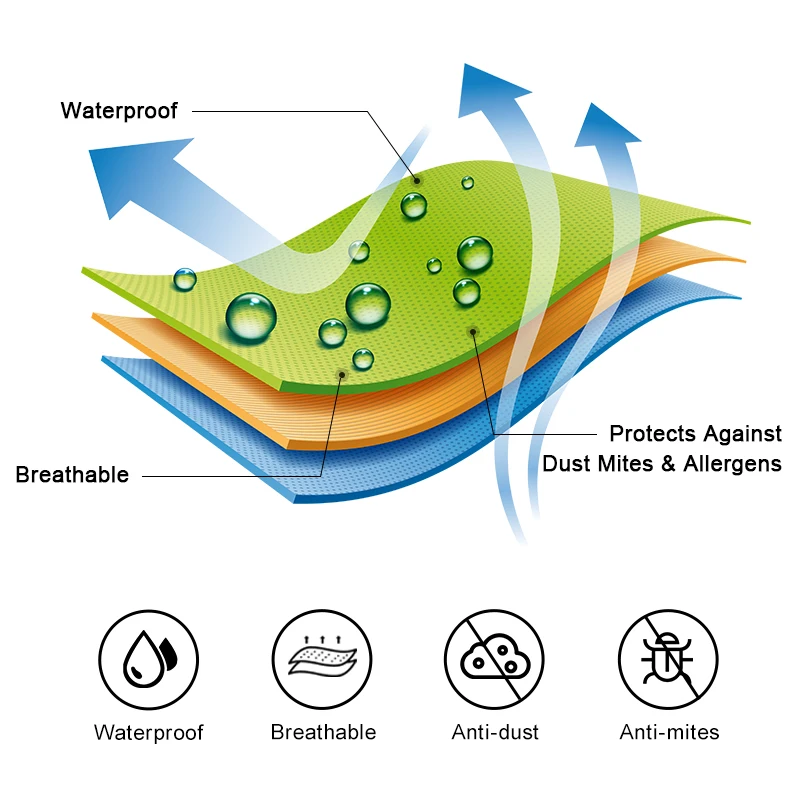Описание: Название: водонепроницаемый защитный матрас Материал: верхняя ткань: полиэфирное покрытие ТПУ + стеганый хлопок Ткань юбки: 100% полиэстер Посылка включает в себя: 1 Водонепроницаемый чехол для матраса (другие не входят в комплект) Особенности: -Защищает от пылевых клещей, жидкостей, мочи, пота, аллергенов и бактерий -Отлично подходит для детей, домашних животных, аллергии, астмы, экземы -Не изменит ощущение вашего матраса Легкая чистка: -Стирка: Машинная стирка протектора матраса с помощью ваших листов с использованием обычных бытовых моющих средств, которые не содержат отбеливатель. Лучше всего мыть водой до 30 градусов, не замачивать и смешивать с темной тканью. -Сушка: Сушить на низкой температуре вместе с простынями, полотенцами или другой одеждой. -Не гладить и не подвергать химической чистке.