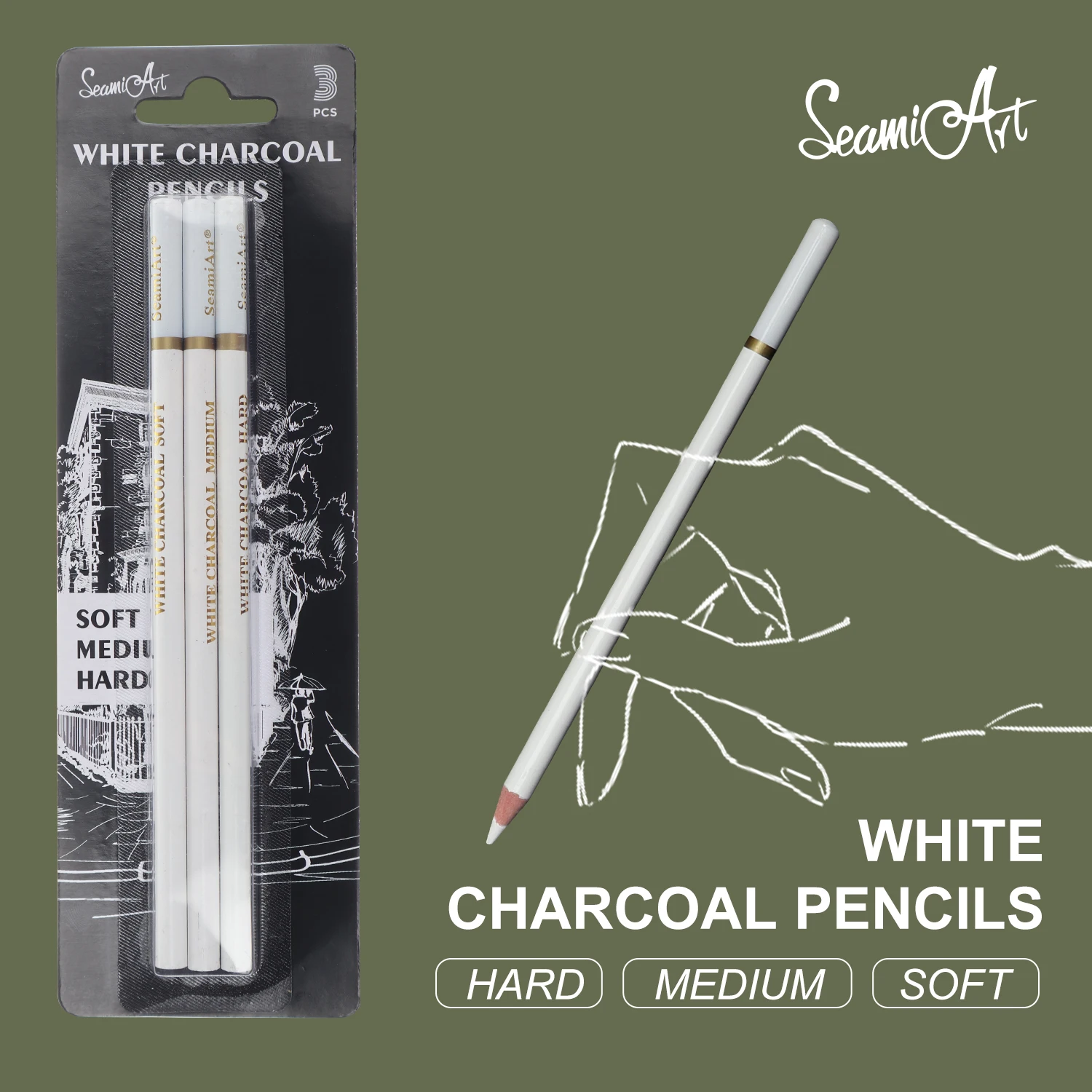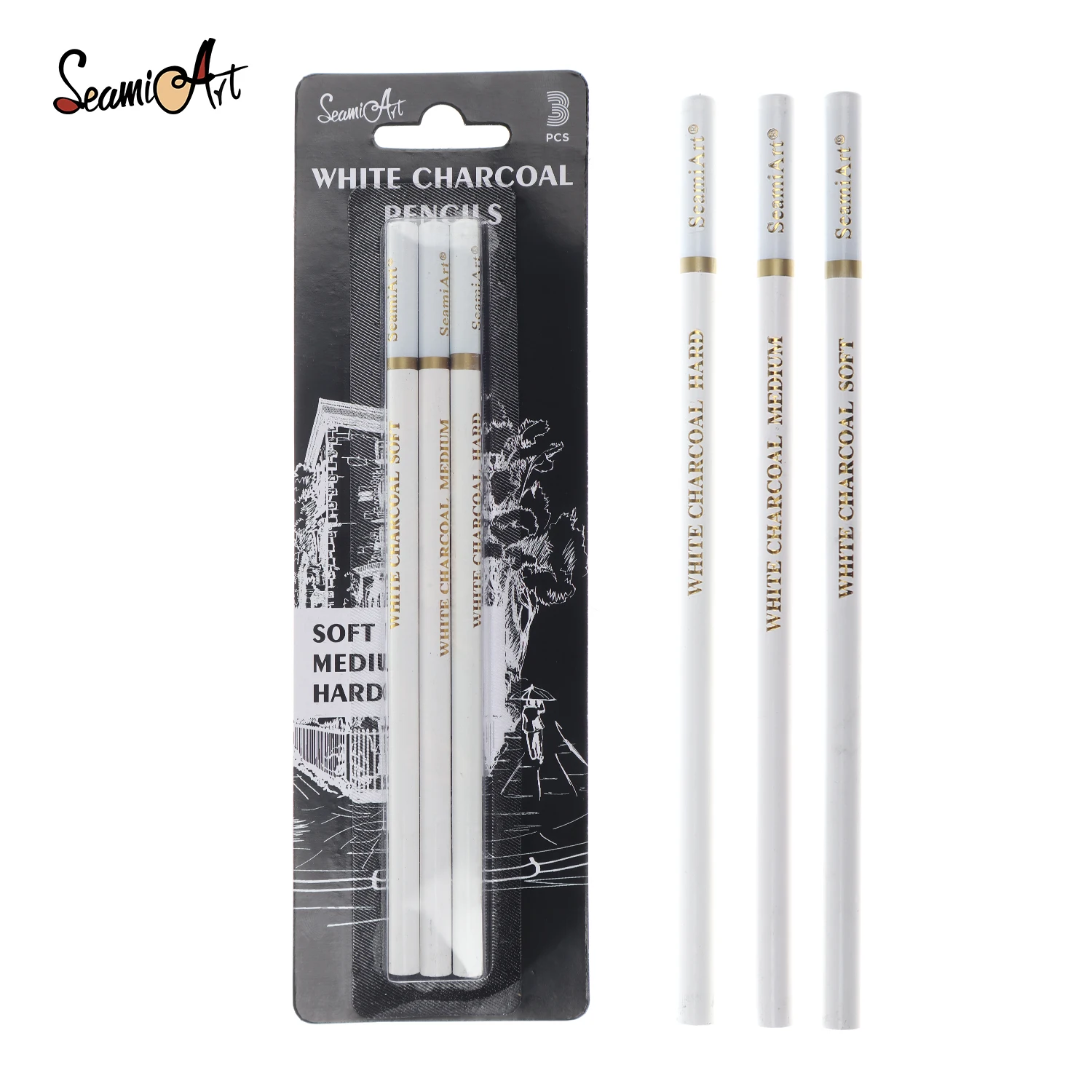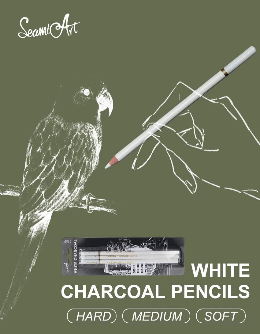 Карандаш SeamiArt с углем мягкийсреднийжесткий белый, 3 шт., карбоновая ручка для скетчинга, инструменты для рисования, офисные школьные поставка карандашей