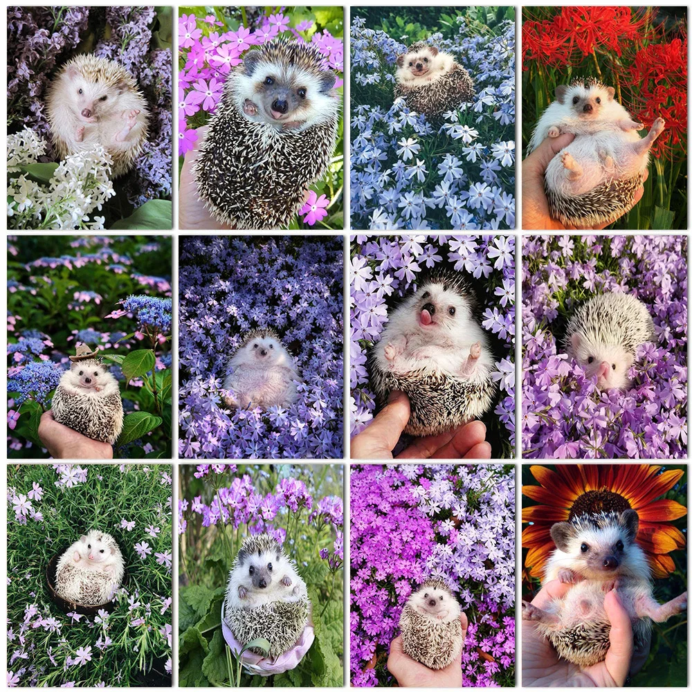 Алмазная живопись 5D "сделай сам", животные, еж, 3D Алмазная вышивка, цветок, вышивка крестом, стразы из смолы, Алмазная мозаика, искусство, домашний декор