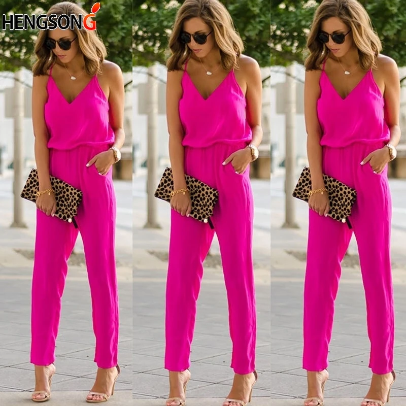Женский комбинезон на бретелях-спагетти, голубой или Желтый Повседневный пляжный комбинезон без рукавов с V-образным вырезом, лето 2018