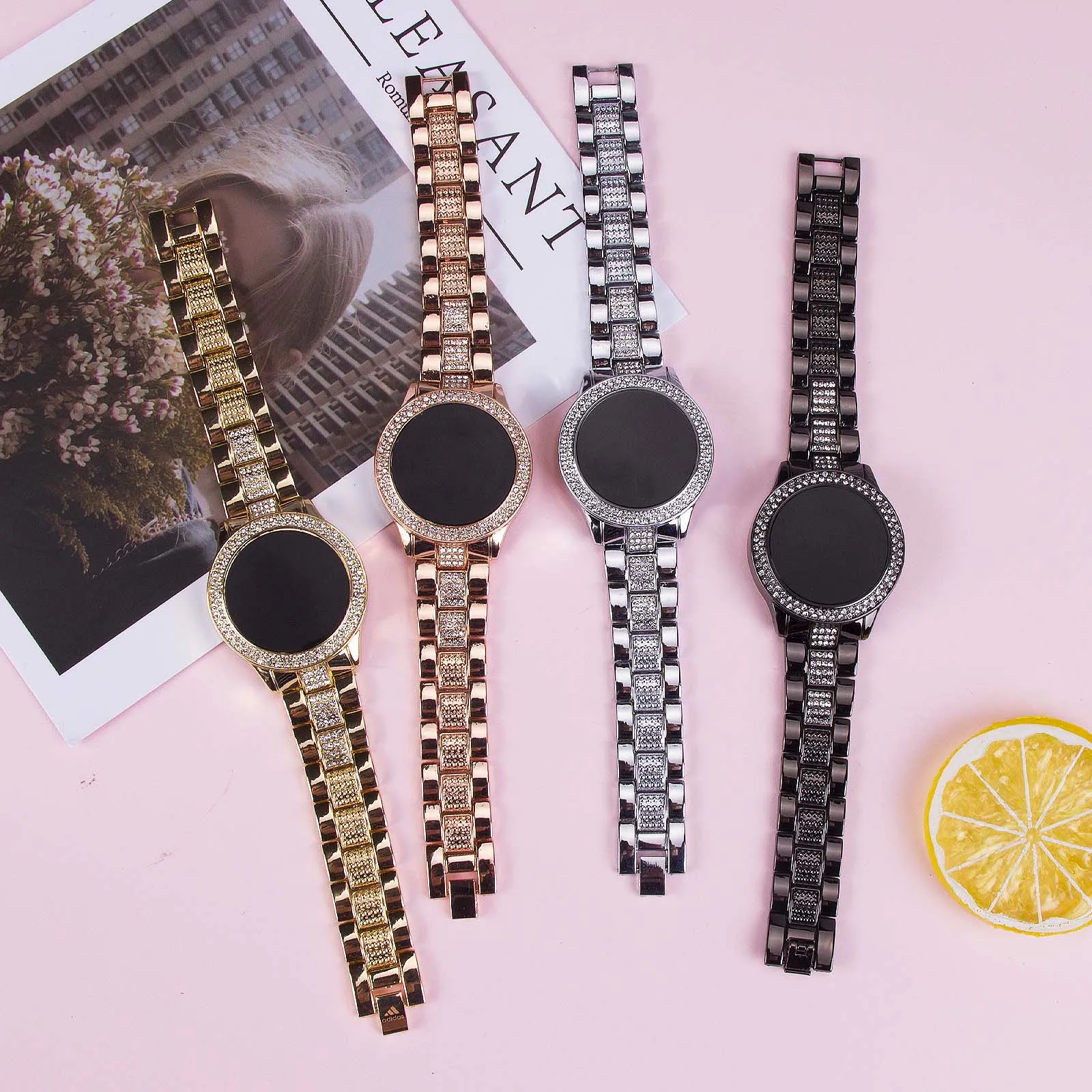 Женщины моды кварцевые часы браслет цвета: черный циферблат роскошн...