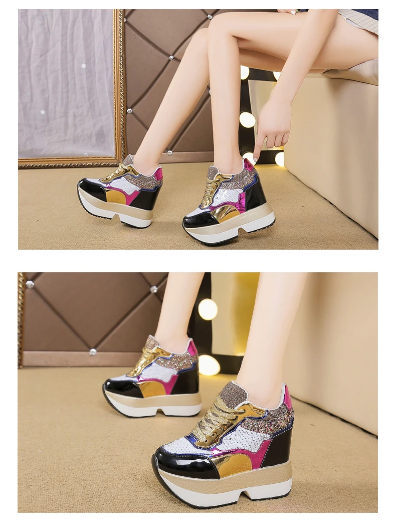 Кроссовки женские на высокой платформе, повседневная обувь, натуральная кожа, толстая подошва 10 см, Модные кеды