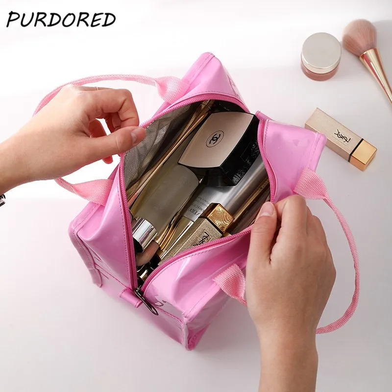 PURDORED 1 шт., женская косметичка карамельных цветов, кожаная Водонепроницаемая дорожная косметичка, большая Портативная сумка для туалетных принадлежностей