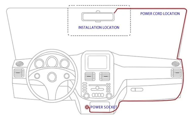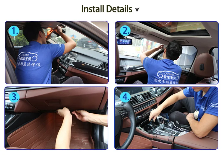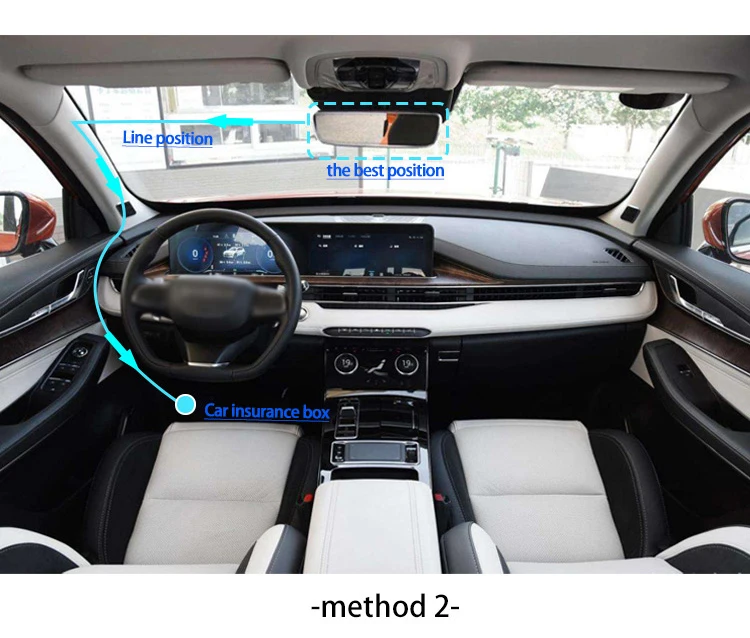1. Выберите правильное положение: привяжите регистратор и зеркало заднего вида вместе с ремешком (тип присоски можно зафиксировать непосредственно на положении переднего лобового стекла), зафиксируйте машинку и подключите отверстие питания.2. Определите путь проводки: вставьте шнур питания вдоль потолочного и дверного герметика, а затем потяните его вниз по ленте.3. Определите маршрут пряжки проводки: Используйте пряжку проводки под ручной пряжкой, чтобы спрятать излишки проводов под ней, и оставьте соответствующий провод для подключения к прикуривателю.4. Вилка питания: вставьте прикуриватель и установите регистратор.