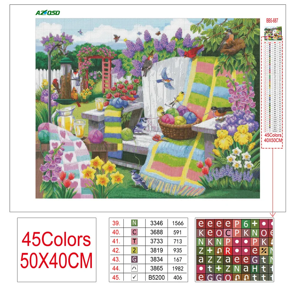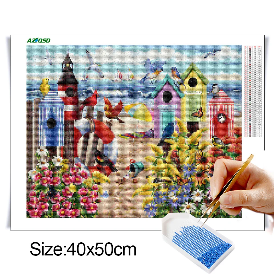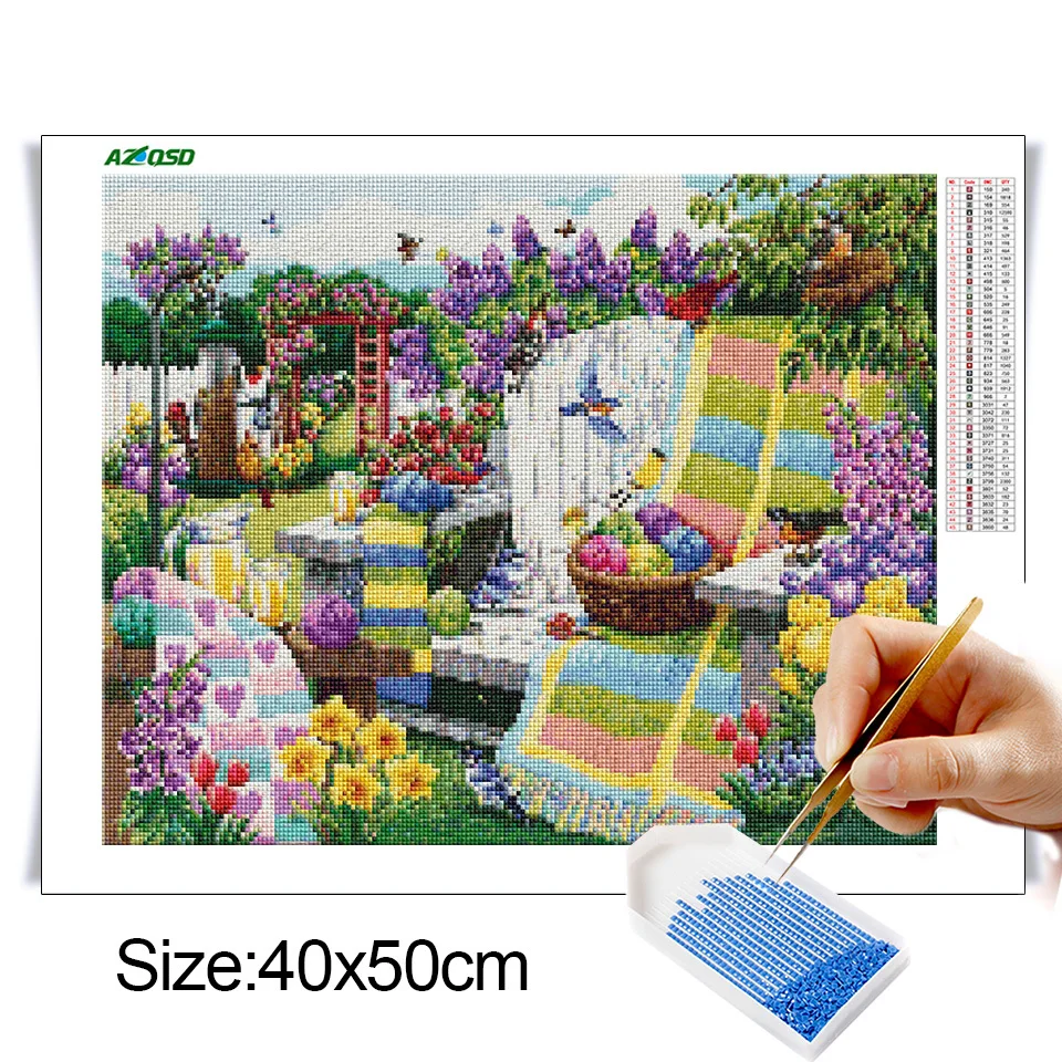 AZQSD полное квадратное сверло Алмазная картина сад птица и крест стежка рукоделие Алмазная вышивка пейзаж продажа украшения дома
