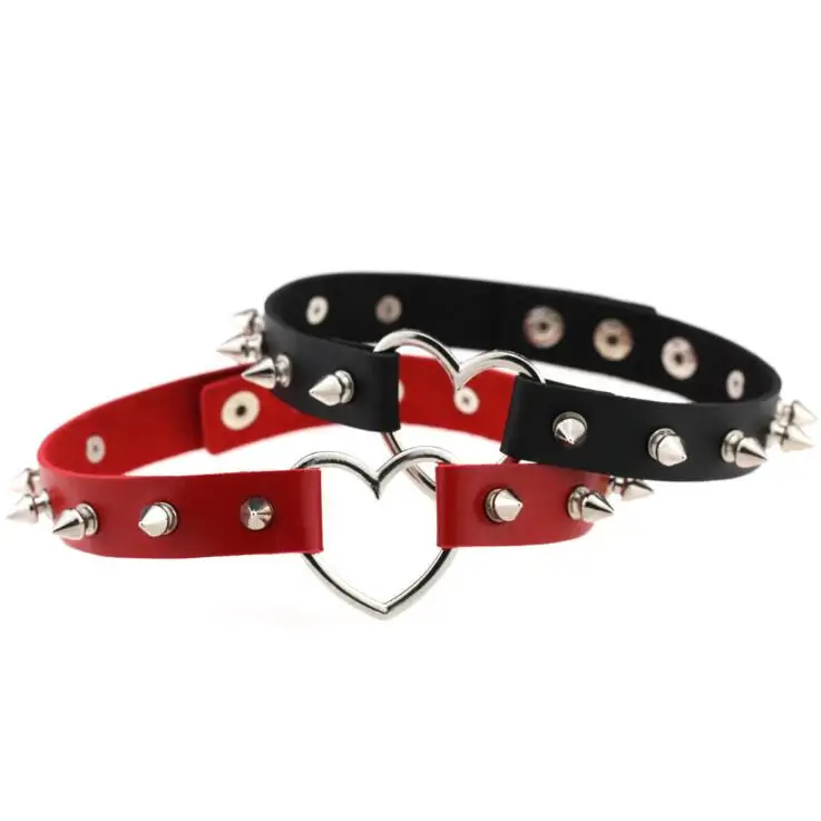 Ошейник женский Готический в стиле Харадзюку, пикантное ожерелье из кожи с заклепками в стиле стимпанк, готическое сердце, панк-чокер
