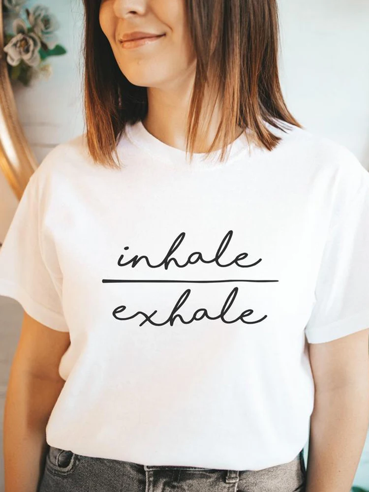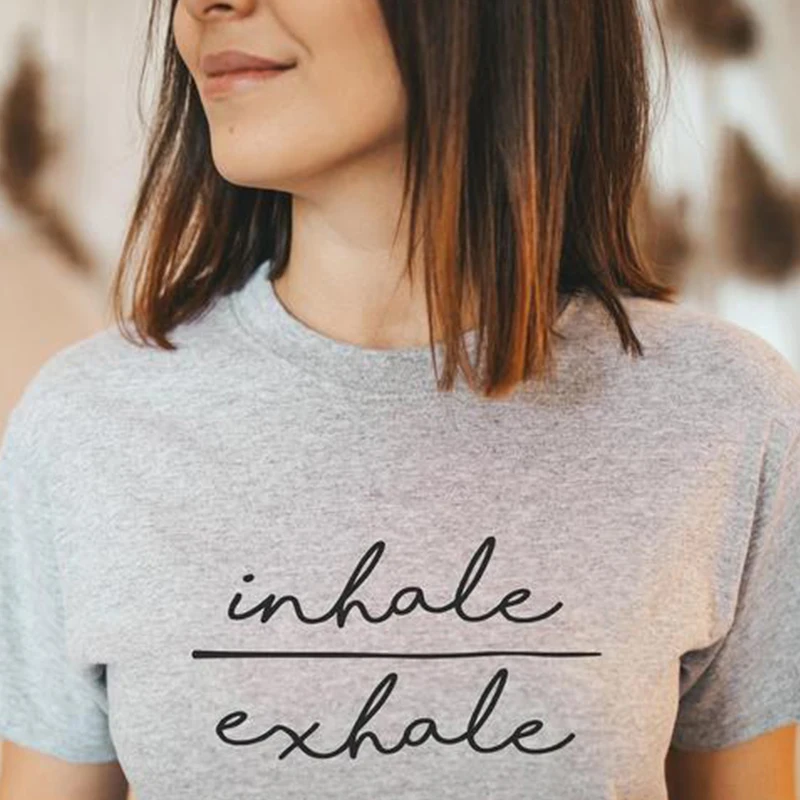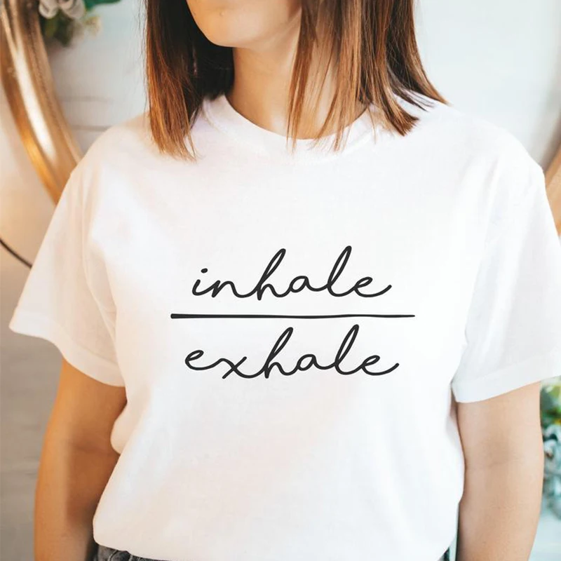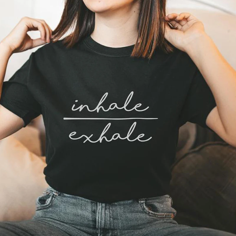 Inhale Exhale, Забавные футболки, женская футболка с коротким рукавом и круглым вырезом, Женская хлопковая футболка, Женский Топ, свободная футболка, Femme, Прямая поставка