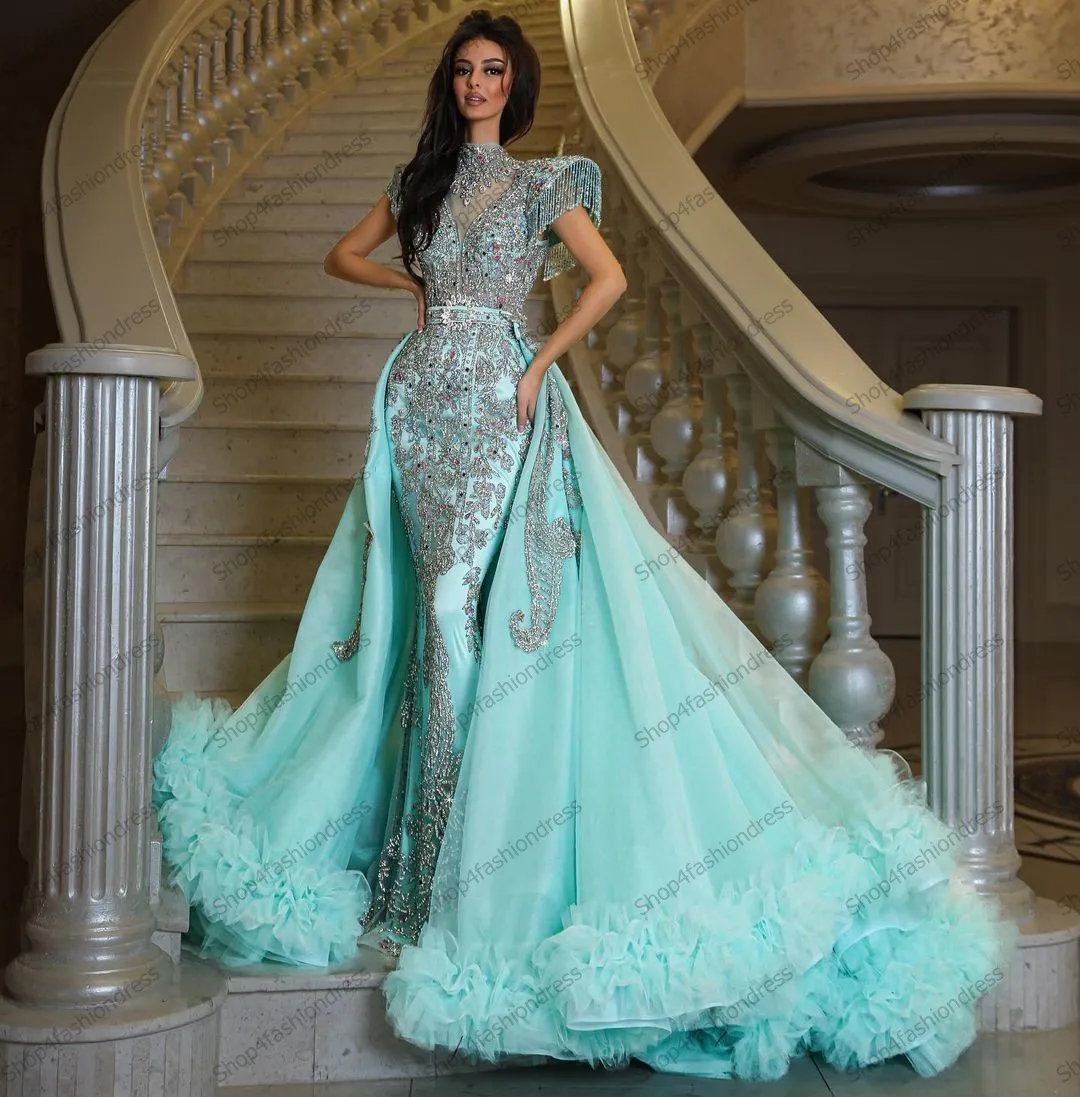 Роскошное вечернее платье с юбкой годе из Дубая, украшенное бусинами и кристаллами, со шлейфом, великолепные вечерние платья из тюля с оборками, Саудовская Аравия