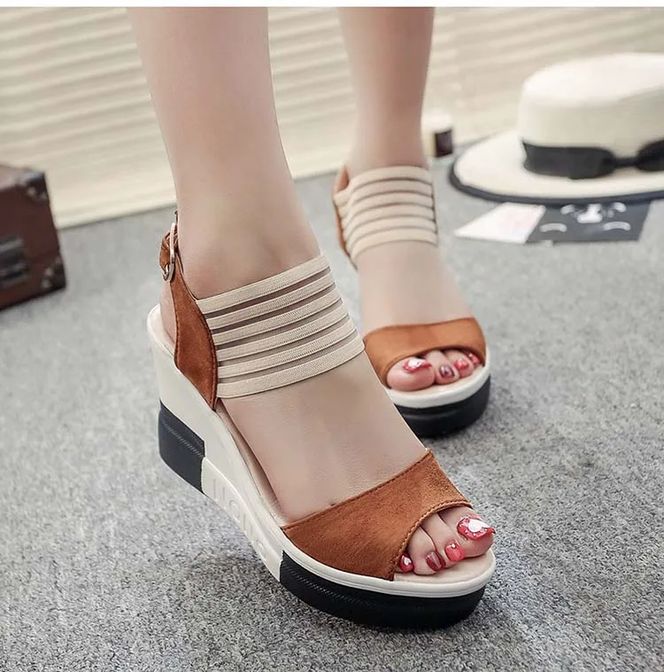 Сандалии женские на платформе, эластичные босоножки, удобная прогул...