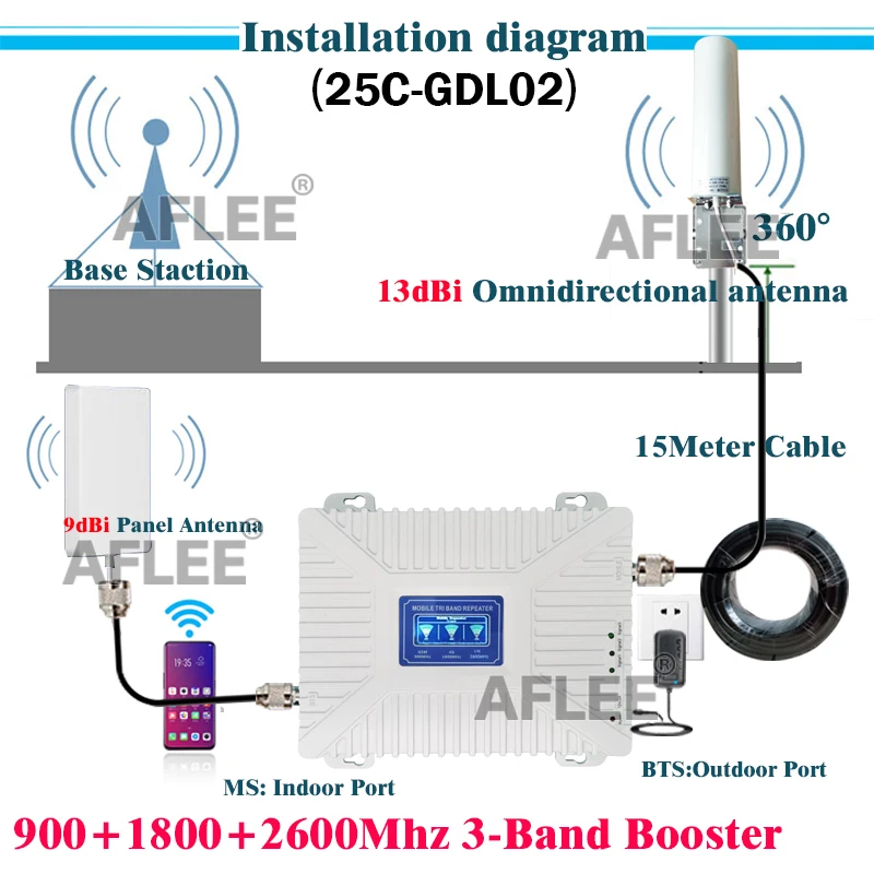 28L-GDWL = 900 1800 2100 2600 четырехполосная Booster + 13dBi антенна 4G всенаправленная антенна + 4G Антенна комнатная потолочная антенна + 15 метровый кабель + Мощность питания + руководство по эксплуатации на английском языке25C-GDL01 = 900 1800 2600 МГц трехполосный усилитель сигнала+ 10dBi LPDA антенна наружная антенна+ 9dBi Внутренняя антенна Сигнала Панельная Антенна (с 2 метровым кабелем)+ 15 метров 50Om кабель+ Руководство на английском языке;25C-GDL02 = 900 1800 2600 МГц трехдиапазонный усилитель сигнала+ 13dBi всенаправленная антенна+ 9dBi Внутренняя антенна Сигнала Панельная Антенна+ 15 метров 50Om кабель+ Руководство на английском языке