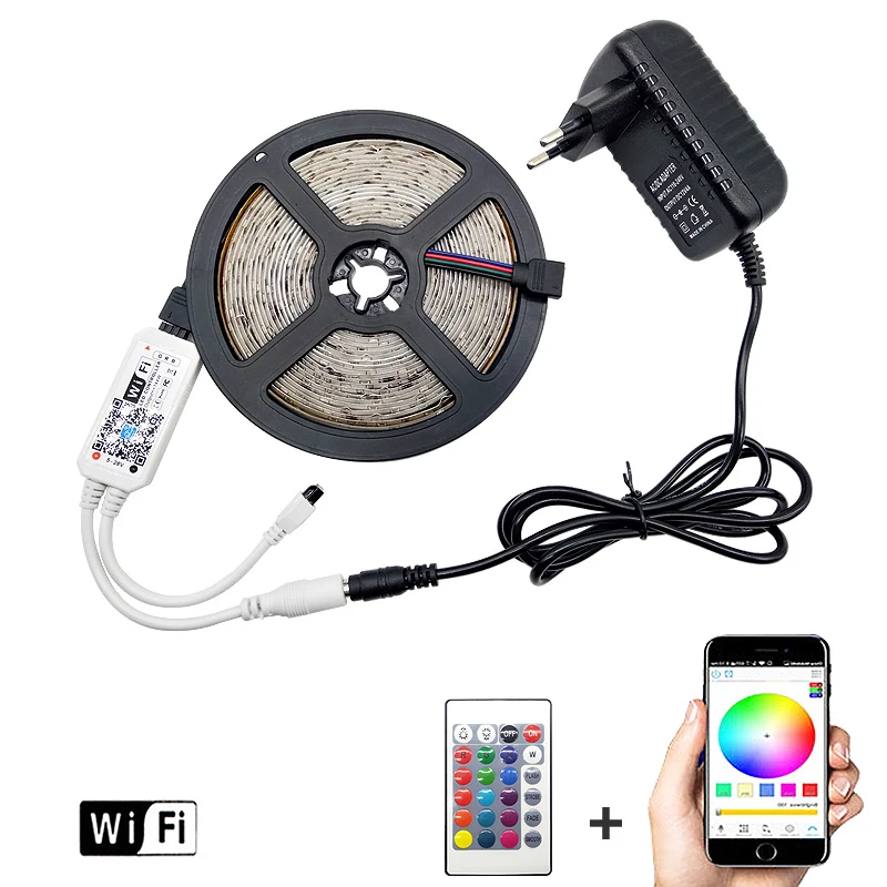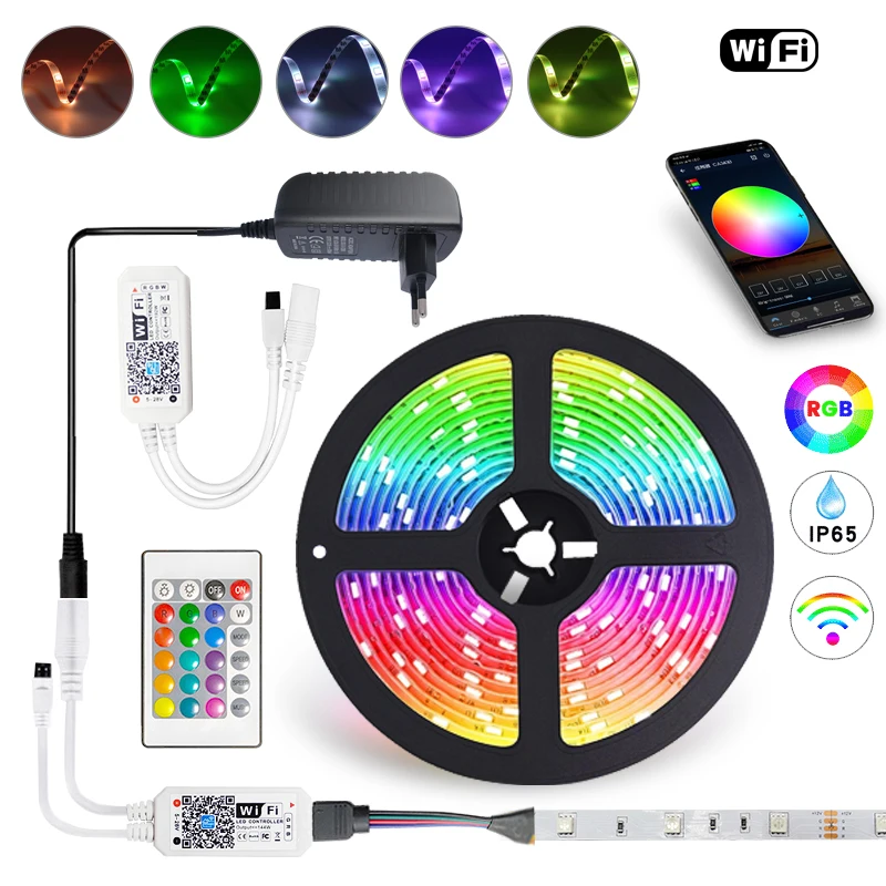 Лента светильник щаяся Гибкая для украшения Roo, BluetoothWIFI контроллер LED, SMD 2835, водонепроницаемая, 12 в пост. Тока, 51015 м