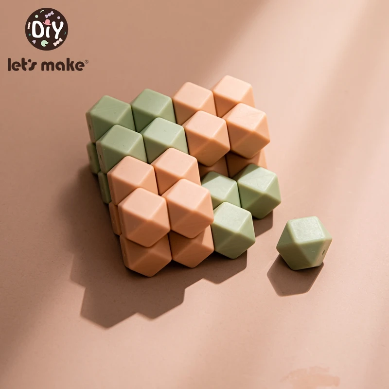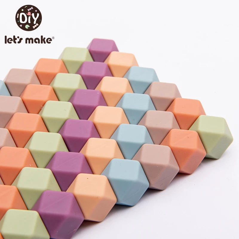 50 шт., шестигранные силиконовые бусины для прорезывания зубов, 15 мм