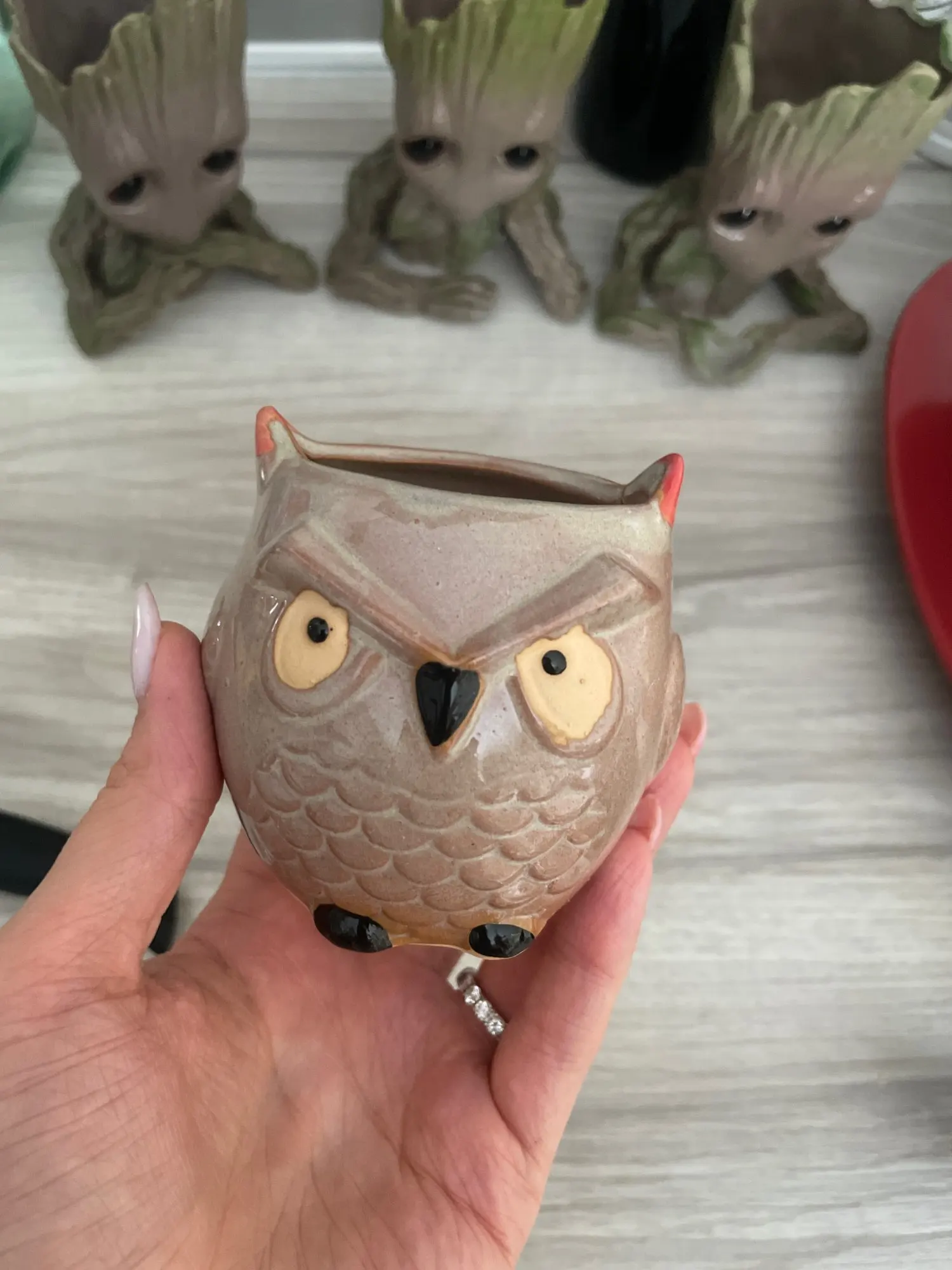 такой горшочек малышка совсем, в описании написаны его параметры конечно, но... совсем кроха. пришёл быстро, до Тольятти 2 недели. качество безупречное, керамический, рисунок на своем месте, везде всё попало. но... выиграла за один цент, но сначала 250 бонусных баллов(которые покупаешь за один балл, один рубль) отдала в цент и монеты, потом оплатила и не заметила , что доставка, по идее бесплатная обошлась в 250 , в общем и целом обошлось мне вместо 76 копеек , в 500 рублей, чем я очень не довольна. продавец ответил, можете отказаться, раз дорого, вообще крутая клиентоориентированность!!!!