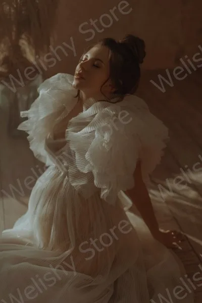 Пышные оборки для беременных фатиновые халаты с V-образным вырезом ...
