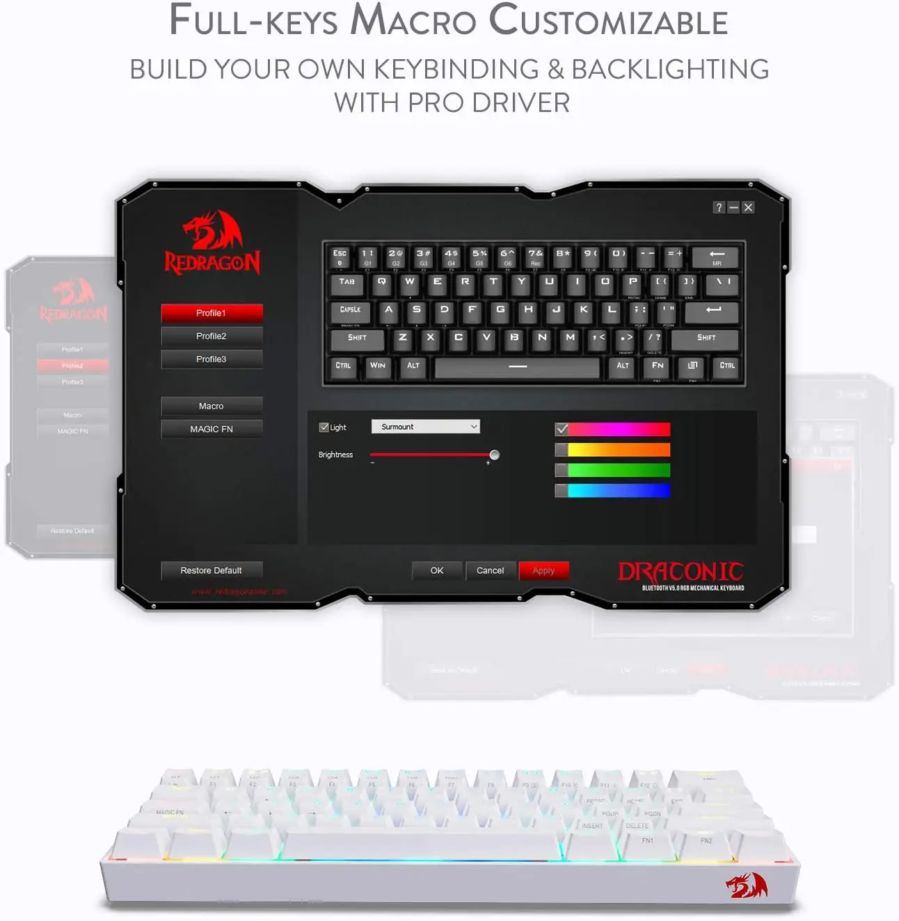 Механическая игровая клавиатура Redragon Draconic K530RGB, Bluetooth 5,0, RGB, беспроводная, 61 клавиша для ноутбука, ПК, сотового телефона