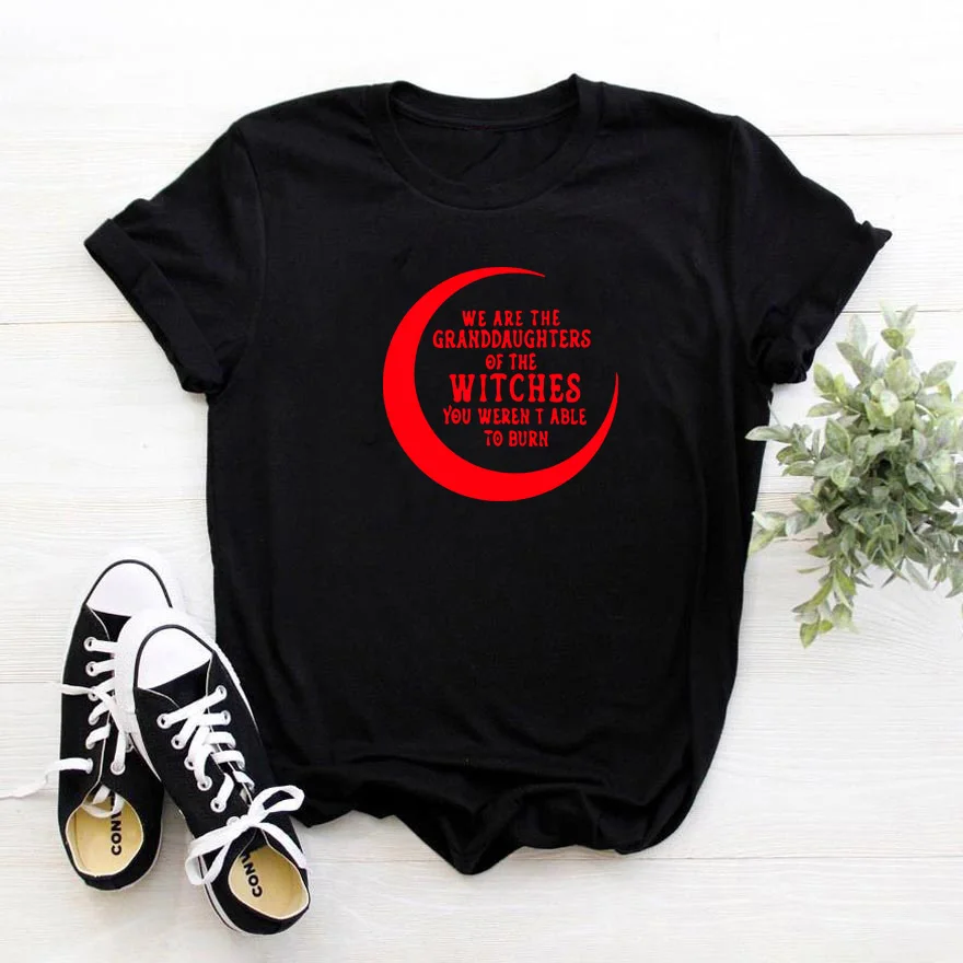 Мы являемся внучек ведьм Футболка женская хлопковая свободная повседневная женская футболка модная черная с О-образным вырезом Футболка Femme