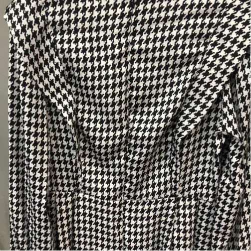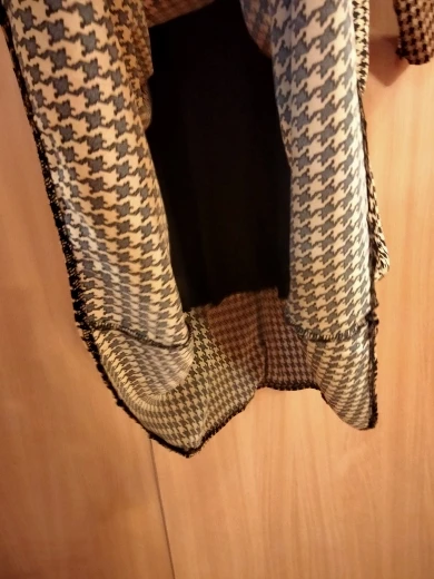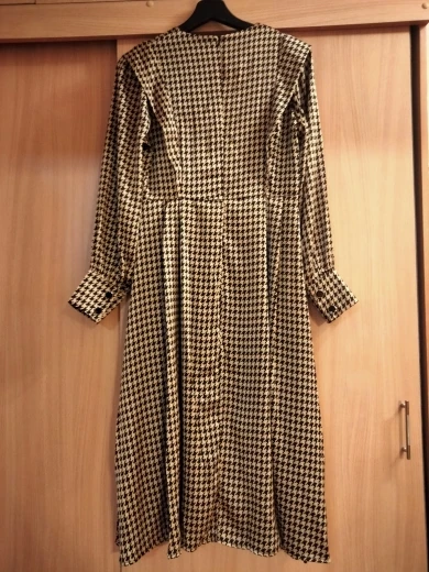 Подол неровный, сшито по спине очень плохо, весь шов в буграх, внизу по шву вообще дыра. Ткань не очень хорошего качества, ползёт, поэтому сейчас весь задний шов распороть и ровно перешить будет сложно. Ткань бы покачественнее и пошив ровный, и находилась бы)) а так недовольна.