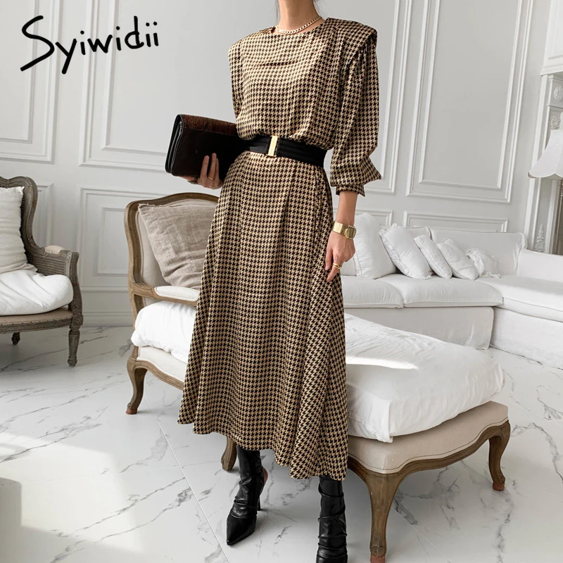 Платье Syiwidii атласное женское с поясом, Элегантное Длинное Платье с круглым вырезом в стиле ампир, уличная одежда, весна-лето 2021