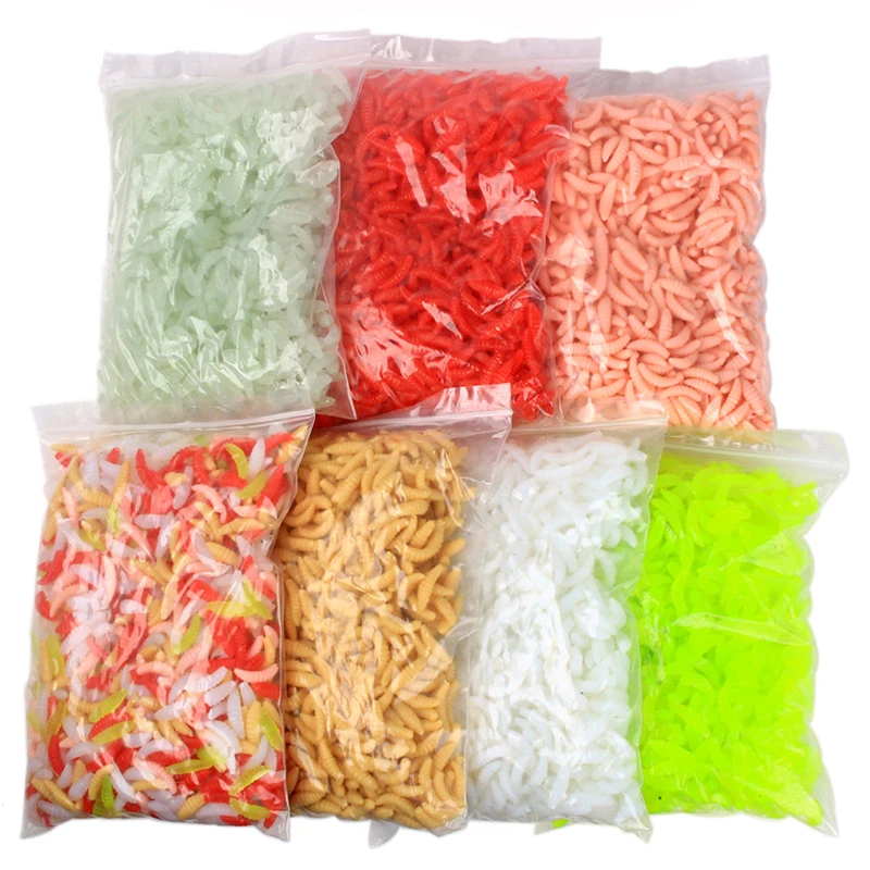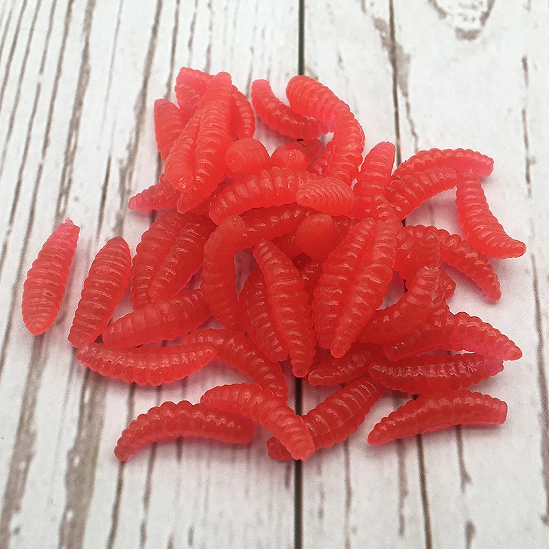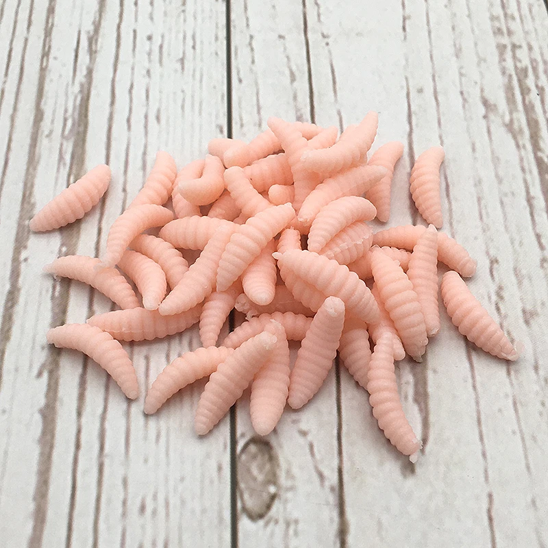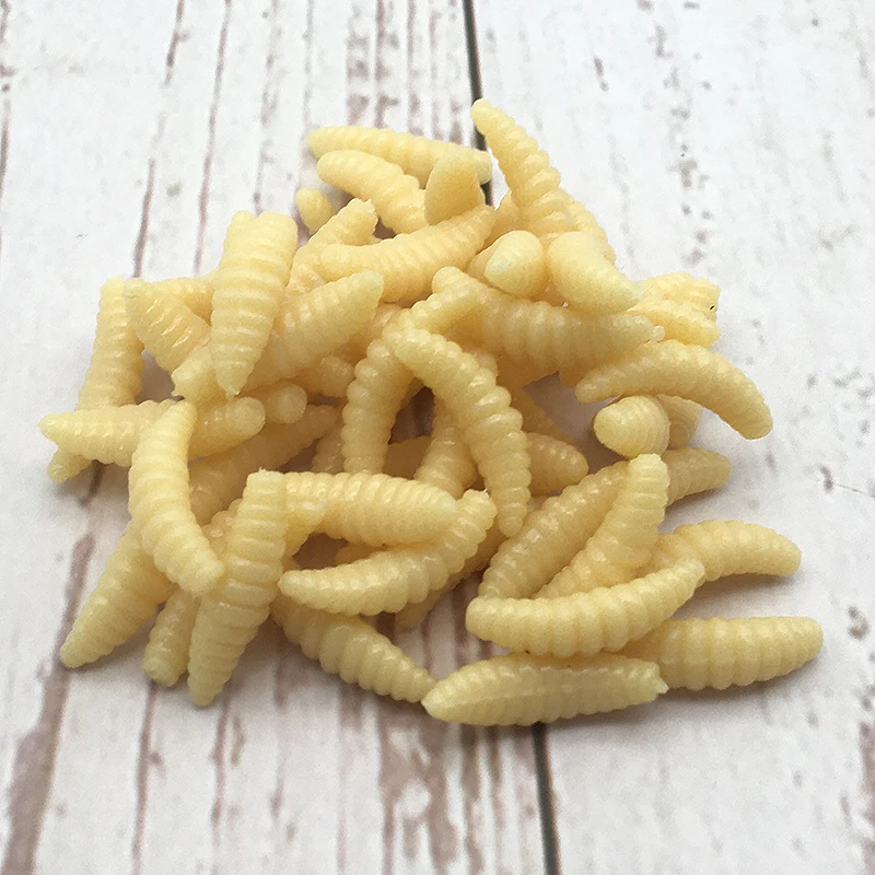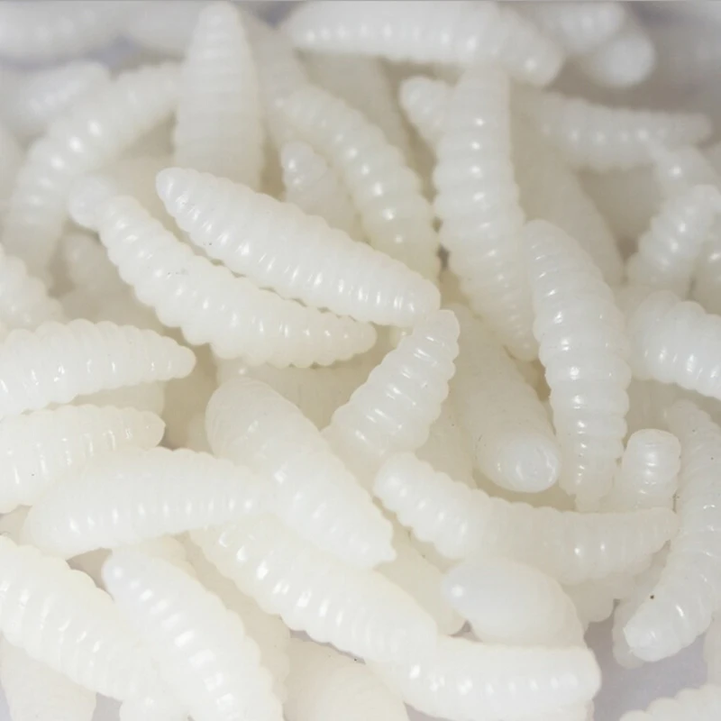 50 шт./пакет хлеб червь силиконовые искусственные приманки 2 см 0,3 г личинка мягкие рыболовные приманки, крючки, крючковые снасти запах черви свечение креветки рыбные приманки