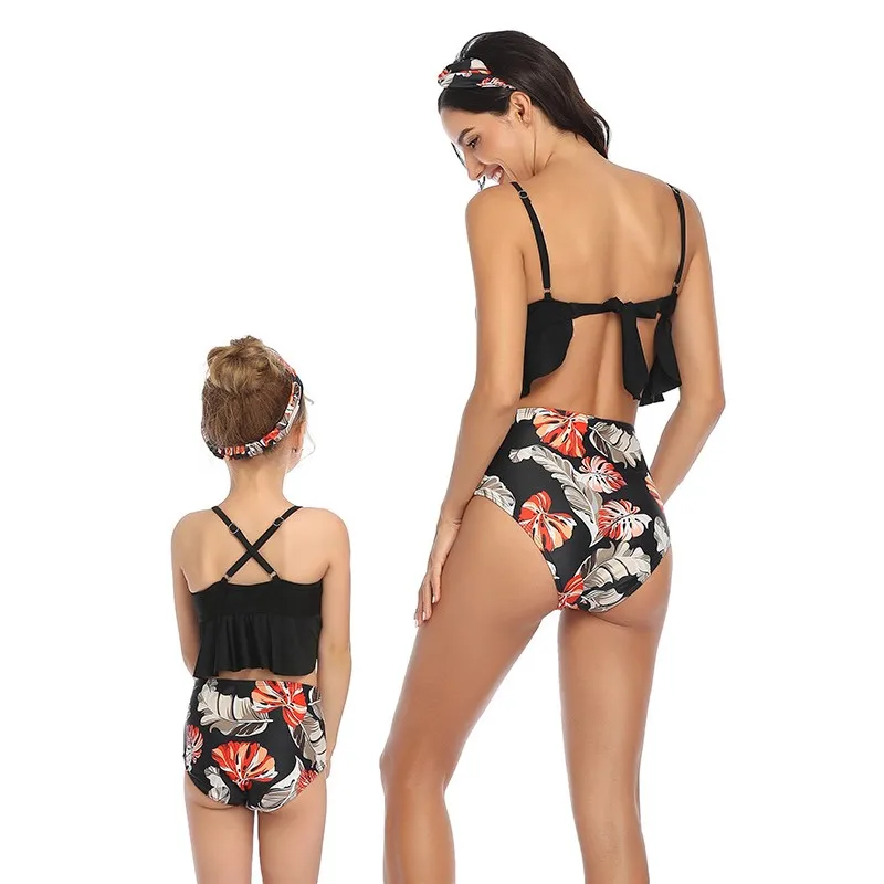 Раздельный купальник с высокой талией, для мамы и дочки, F001