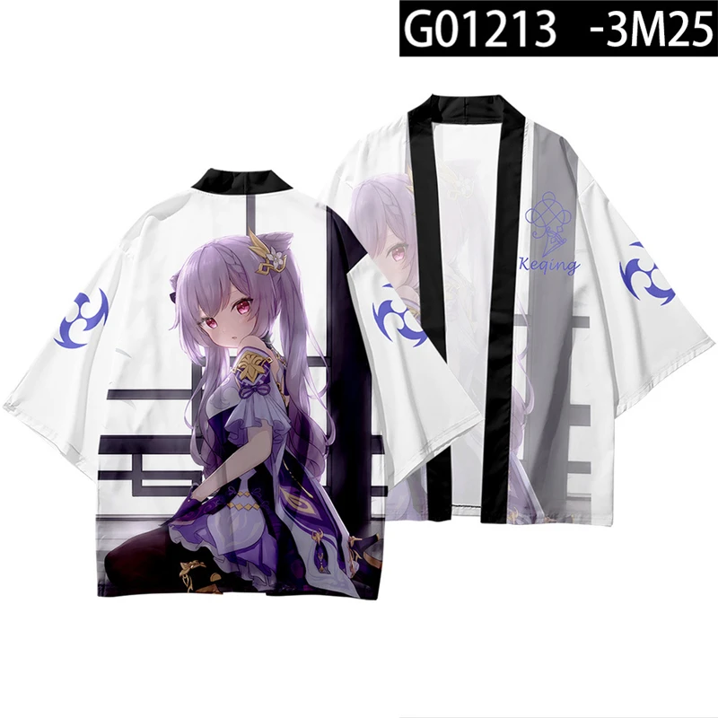 Кимоно Game Genshin Impact, шифоновое пальто, костюм Keqing, плащ для косплея унисекс, модный костюм