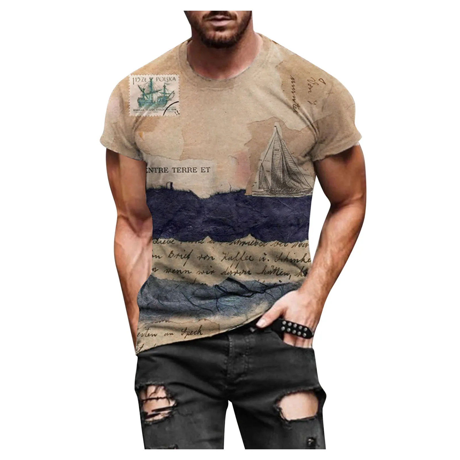 Футболки мужские, в стиле Харадзюку, с этническим принтом, с круглым воротником, большого размера, весна-лето, футболки с коротким рукавом