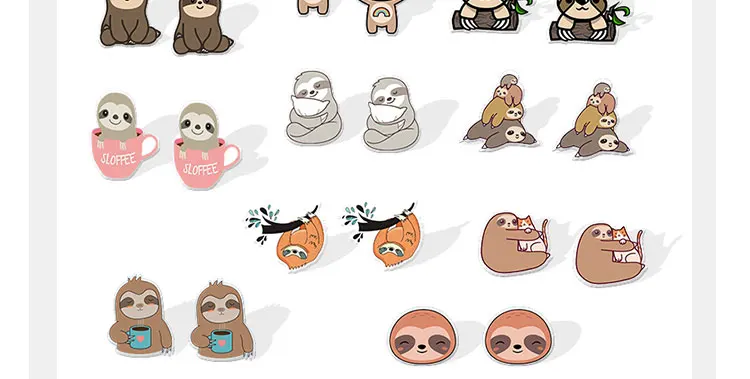 2019 Новые забавные акриловые серьги ленивого животного, серьги-гвоздики из эпоксидной смолы, подарки для детей