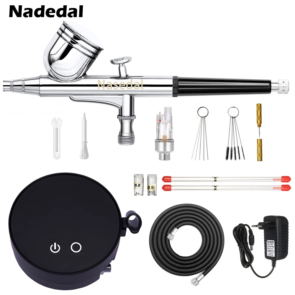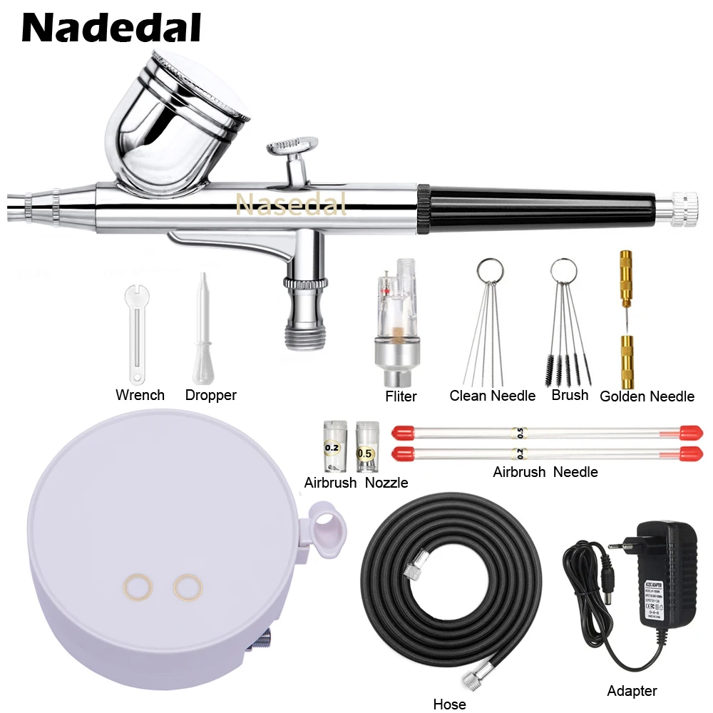 Аэрограф Nasedal с компрессором, 0,3 мм, 7 куб. См, краскопульт двойного действия для макияжа, татуажа ногтей