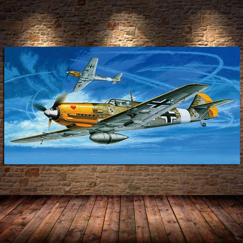 Ww2 самолет Bf 109 люфтвафф Германия военный салон холст живопись постер печать на стене отображение для спальни без рамки