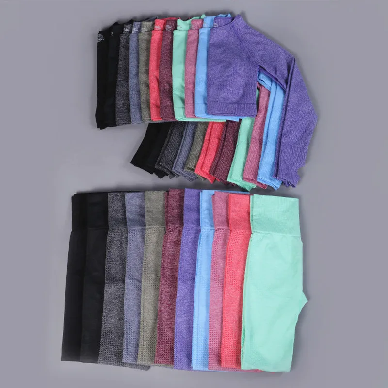 2021 Весенний Новый женский спортивный костюм 2 шт. бесшовный Набор для йоги Gymwear с длинным рукавом для спортзала с высокой талией леггинсы для фитнеса женская спортивная одежда