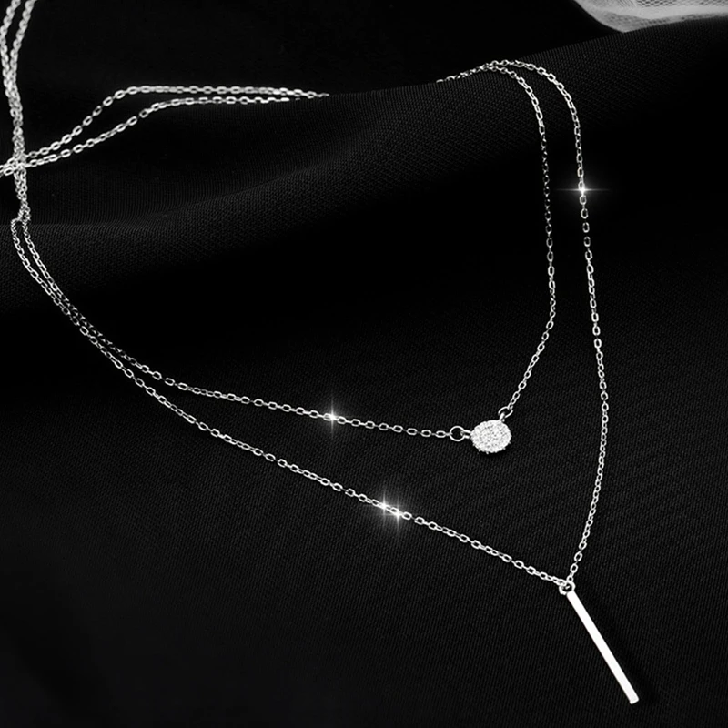 Двухслойное ожерелье из розового золота и серебра, длинное круглое сверкающее ожерелье с длинной подвеской из циркония, хороший подарок для девушки, аксессуары