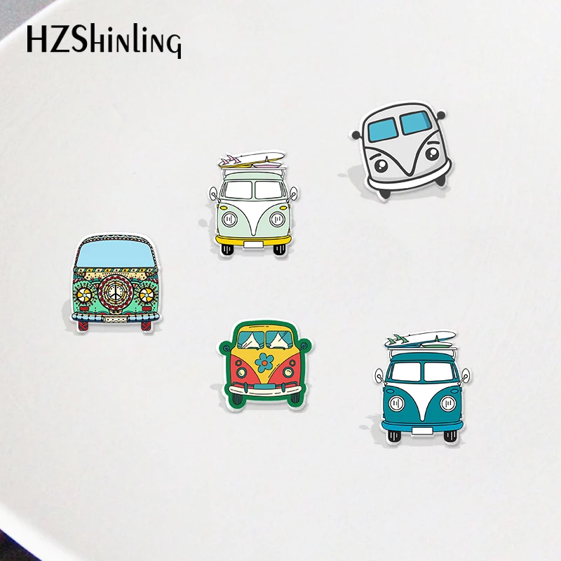 Новое поступление, акриловые булавки с лацканами, винтажные булавки с рисунком фургона мира и автомобиля, ручная работа, эпоксидная смола