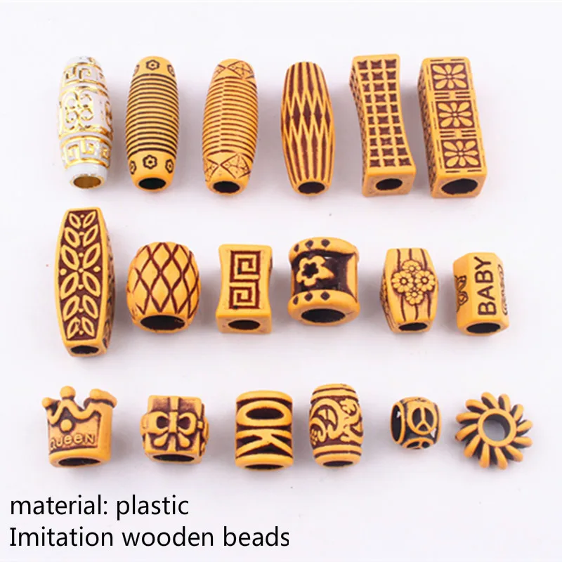10 шт., бусины дредлока для волос, пластиковые, искусственные, деревянные, цветные, плетение, украшения для волос, 6 мм, аксессуары для волос с отверстиями, для косичек