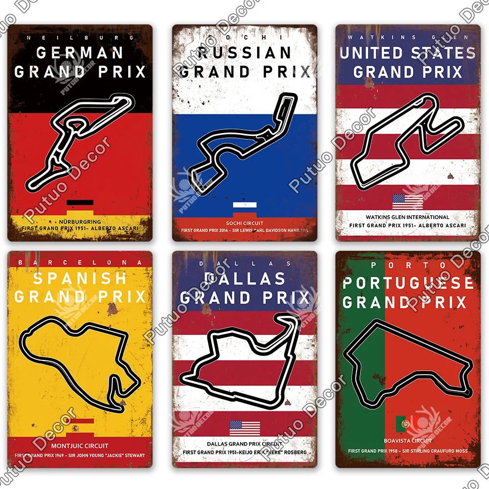 Винтажный металлический постер Putuo Decor F1 для соревнований, мет...