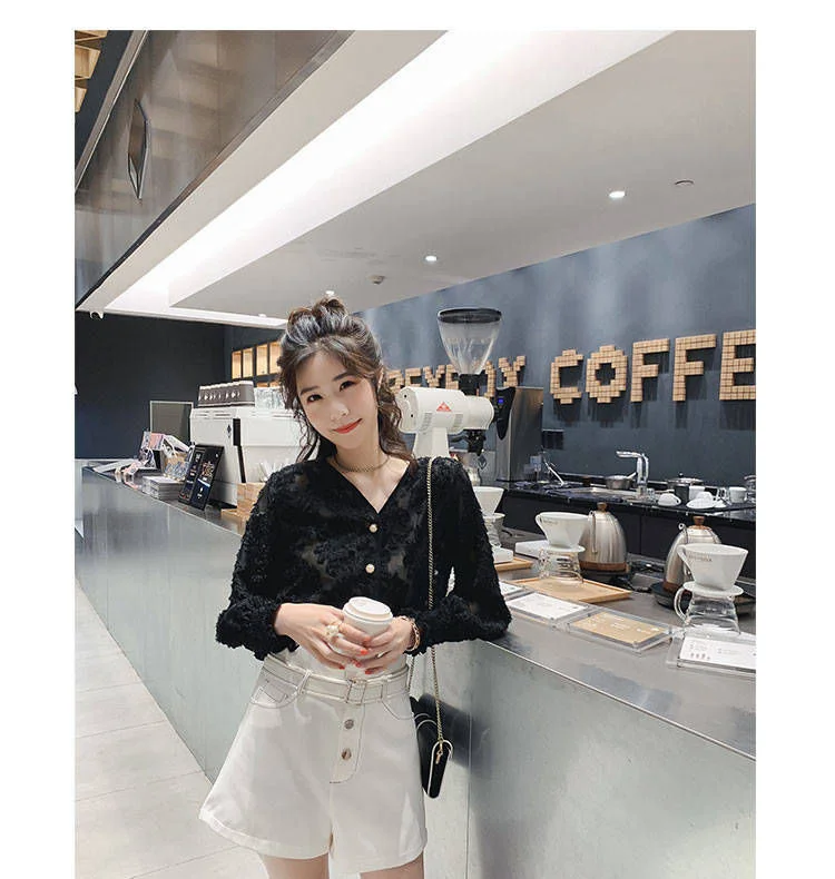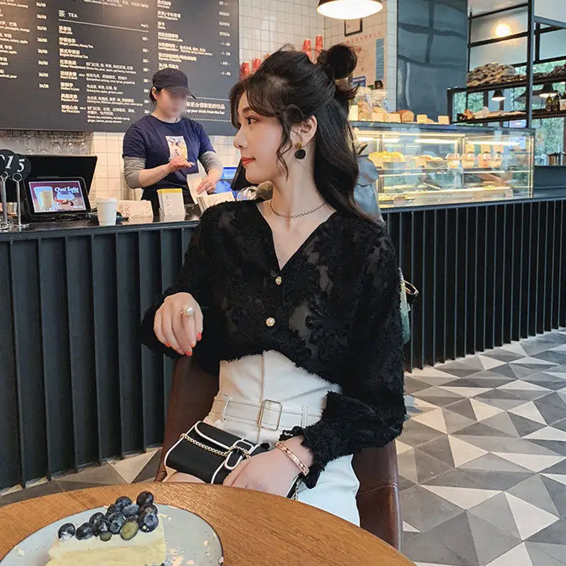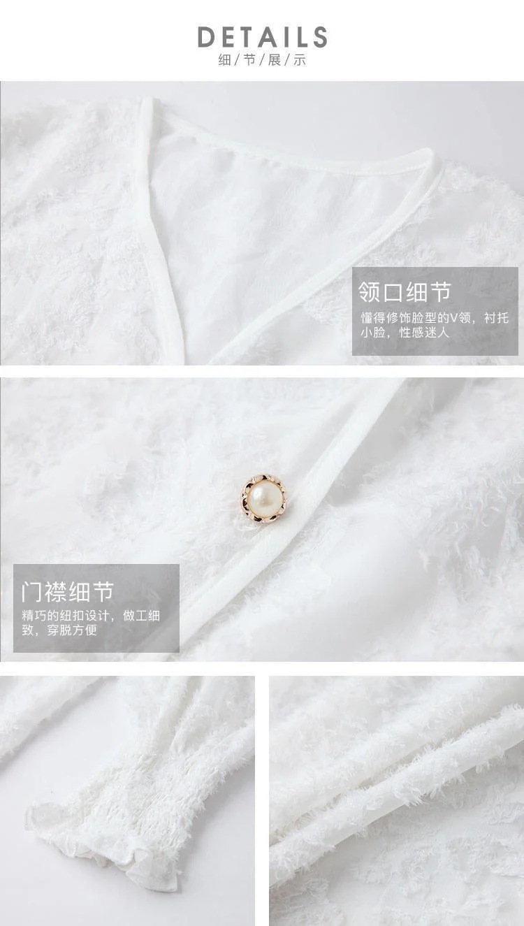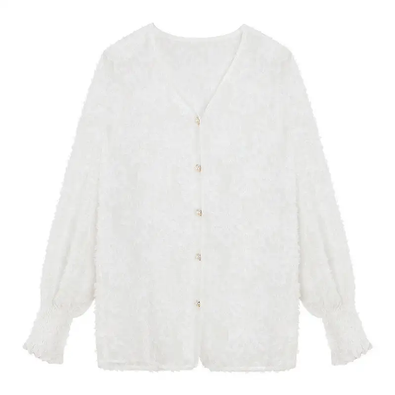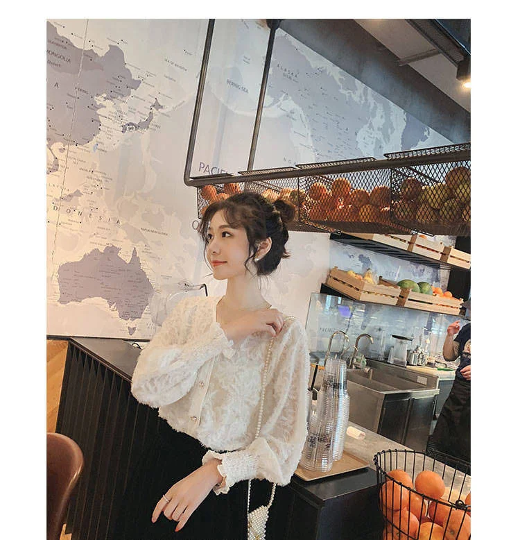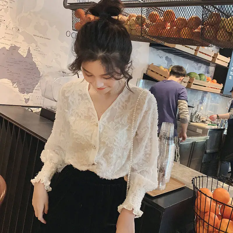 DAXIN Женская белая кружевная блузка с длинным рукавом Топы Милая ж...