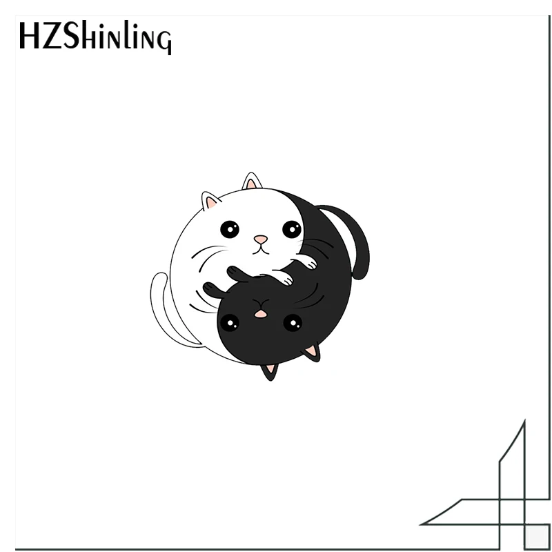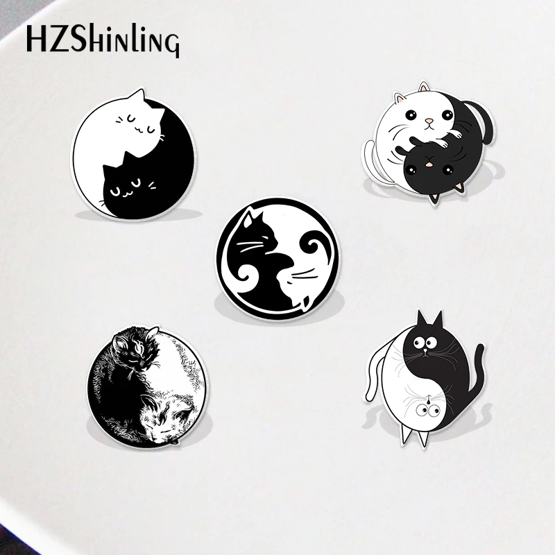 Коты Инь Ян мультфильм черно-белые кошки акриловые Значки для лацкана аксессуары эпоксидная смола